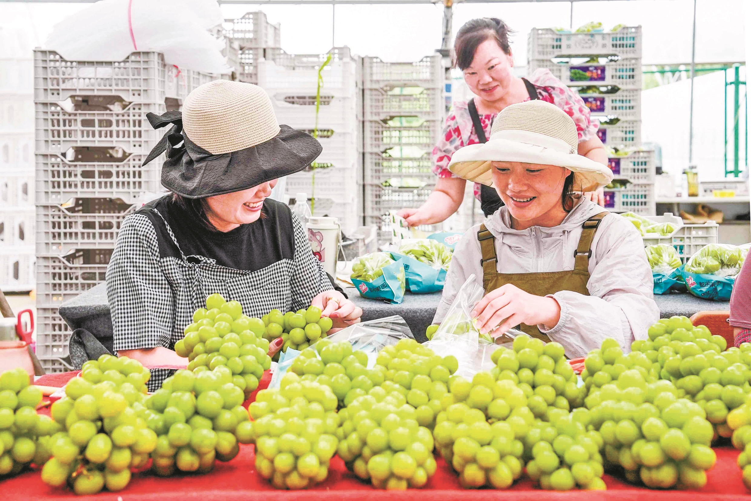 清晨5点,农场内已是一派繁忙景象。近30名采摘工人正在葡萄架下穿梭。“咔嚓、咔嚓”的剪枝声此起彼伏,奏响了夏日的丰收乐章。