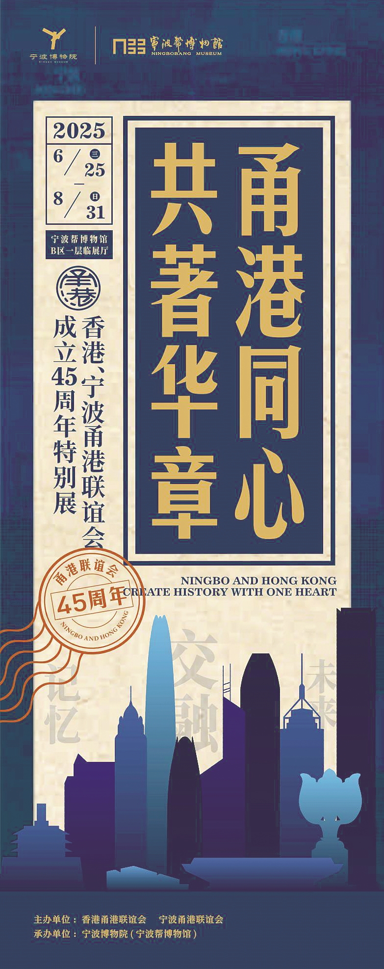 在甬港联谊会成立45周年之际,香港甬港联谊会、宁波甬港联谊会共同在宁波帮博物馆举办“甬港同心 共著华章——香港、宁波甬港联谊会成立45周年特别展”。本次展览分为“迎春启程”“共襄盛举”“美美与共”三个篇章,通过珍贵的历史照片、文献资料和实物展品,生动再现甬港联谊会45年来的发展历程和广大宁波籍海内外人士推动家乡经济社会发展与香港繁荣稳定的突出贡献,全面展示了甬港同心同行的往昔足迹。