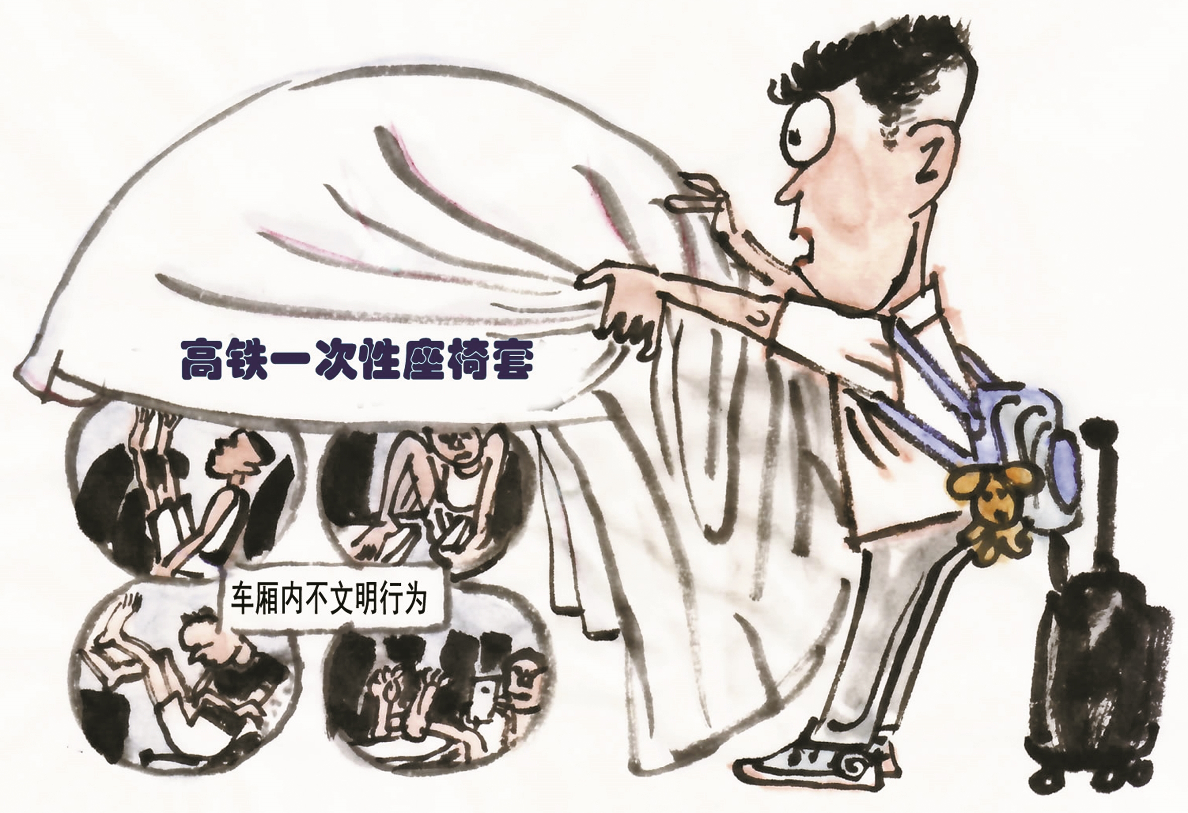 近日,不少网友在社交媒体上发帖称,看到同车厢乘客把脚搭在小桌板上、拖鞋直接踩高铁座椅等不卫生的行为。一些乘客因怕被传染皮肤病等,自带一次性座套。对于车厢内的一些不文明行为,暂无强制惩处措施。然而,文明乘车应是每位乘客对自己的基本要求(7月22日澎湃新闻)。
