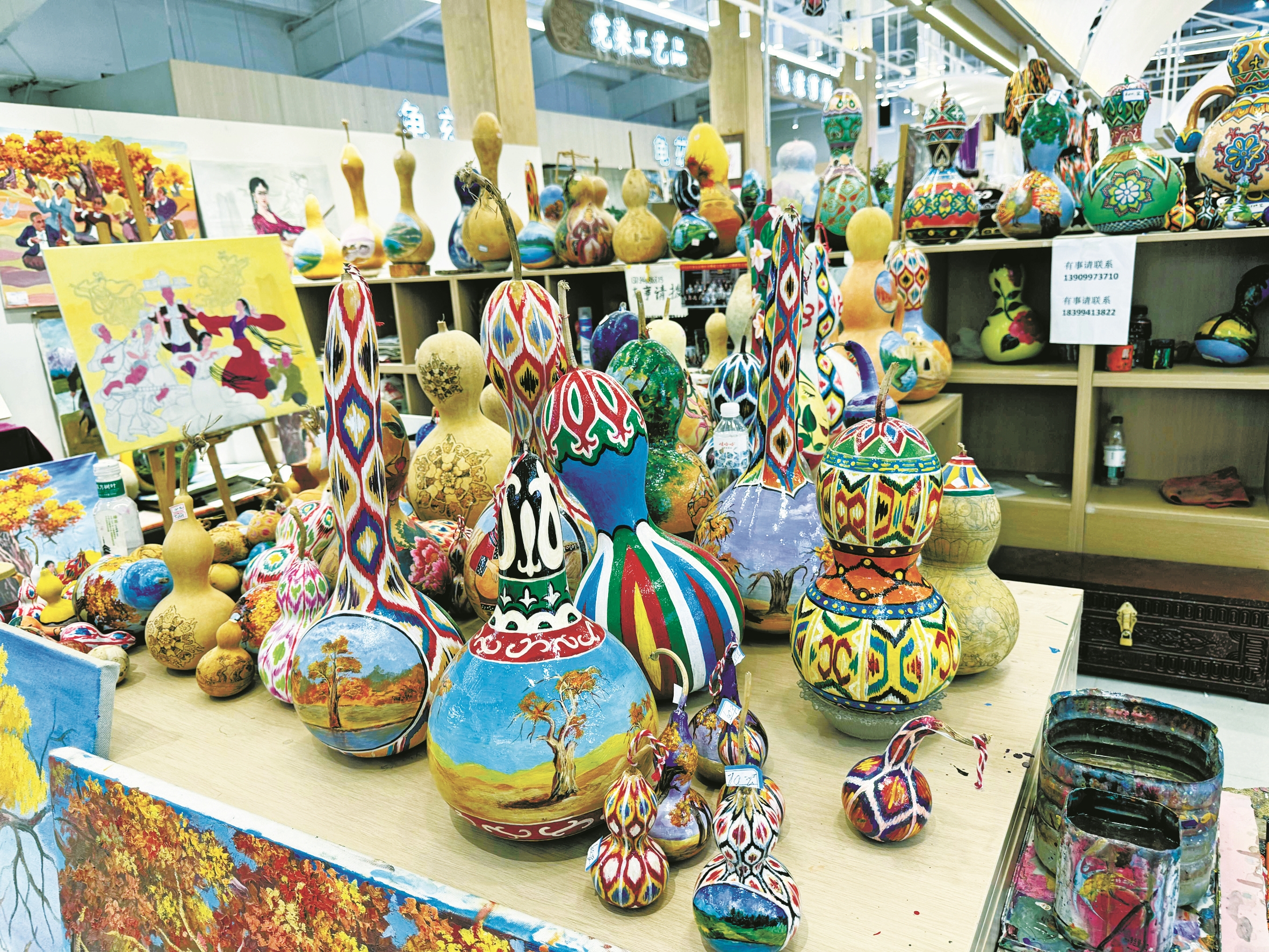 和吐尔逊爷孙一样忙得不亦乐乎的,还有工坊里的铜器制作技艺传承人买买提·卡迪尔、葫芦画非遗代表性传承人斯马依·阿布拉……