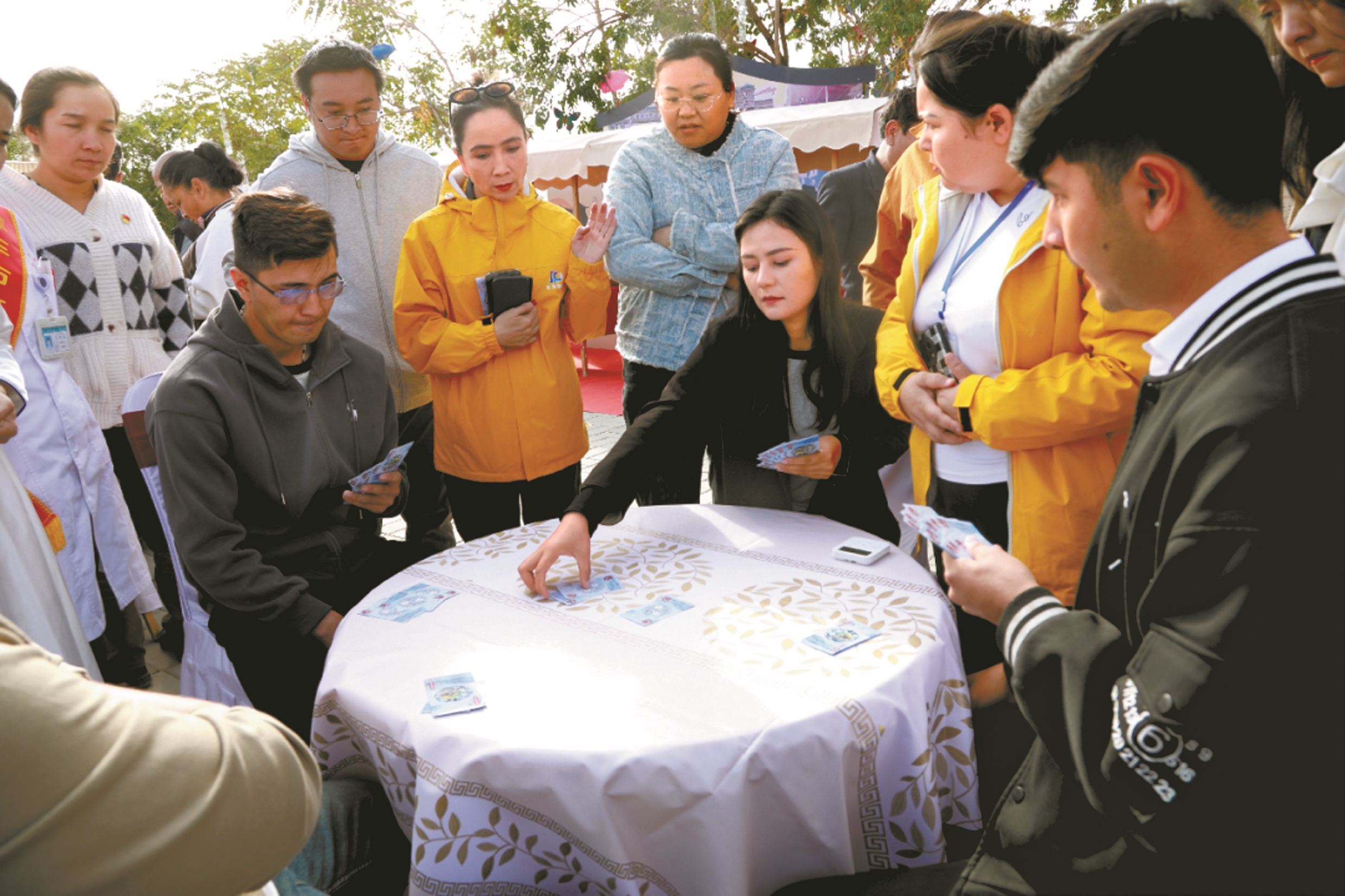 天福社区居民古哈尔尼沙汗·托乎提看到周围的朋友都在玩,想着试试便上了瘾,“玩着玩着就学会了更多国通语”;