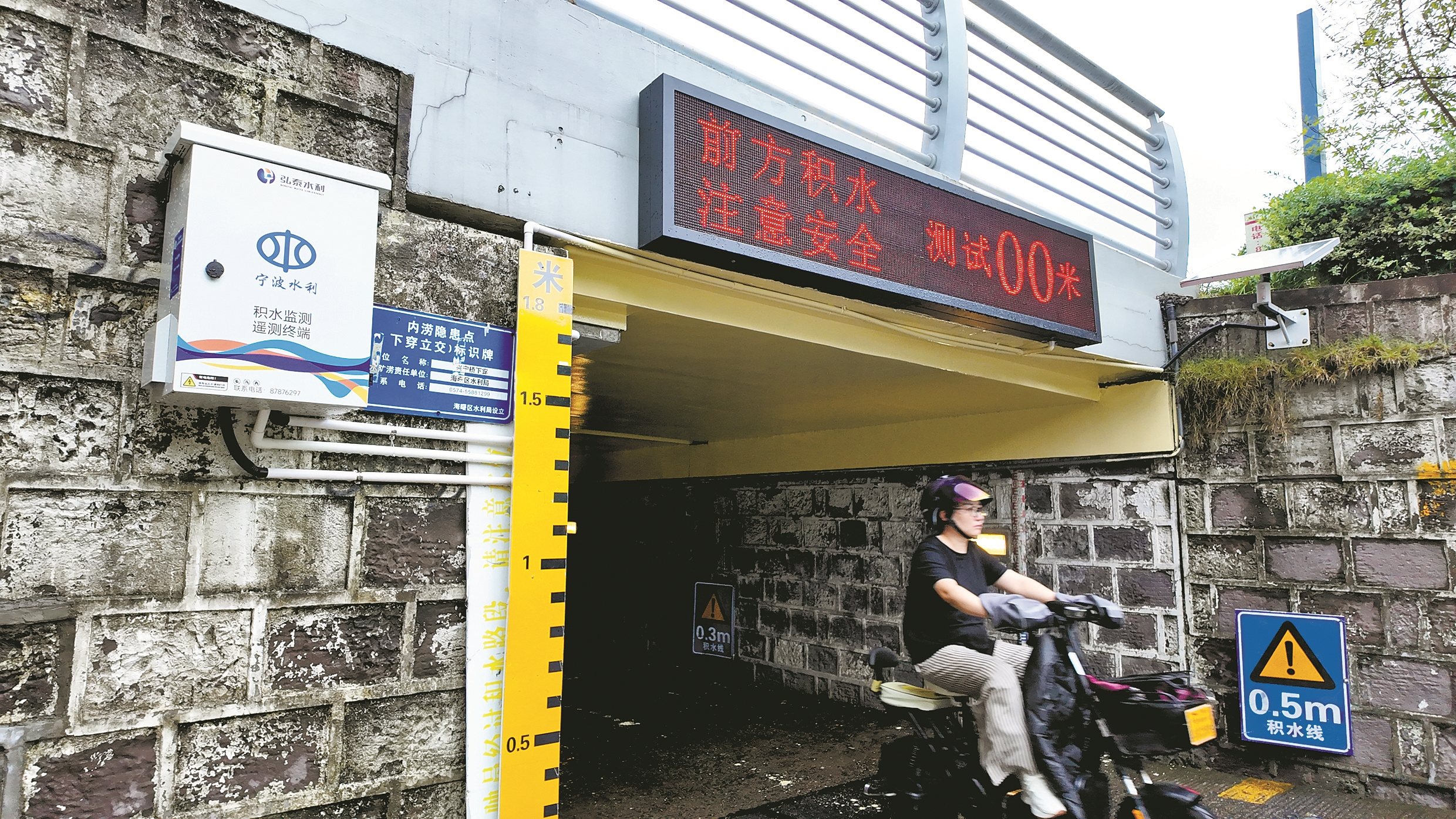 本报讯(通讯员张昊桦 张莹 记者沈天舟)昨天,海曙区水利局对新布设在三市立交下穿、兴宁桥西涵洞等8处易积水区域的内涝监测预警系统进行测试,保证系统在台风影响期间正常工作。