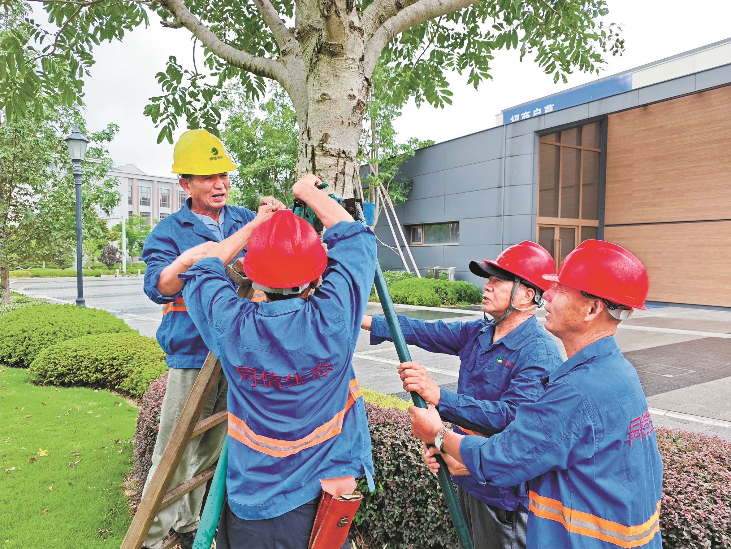 对树木进行加固支撑。