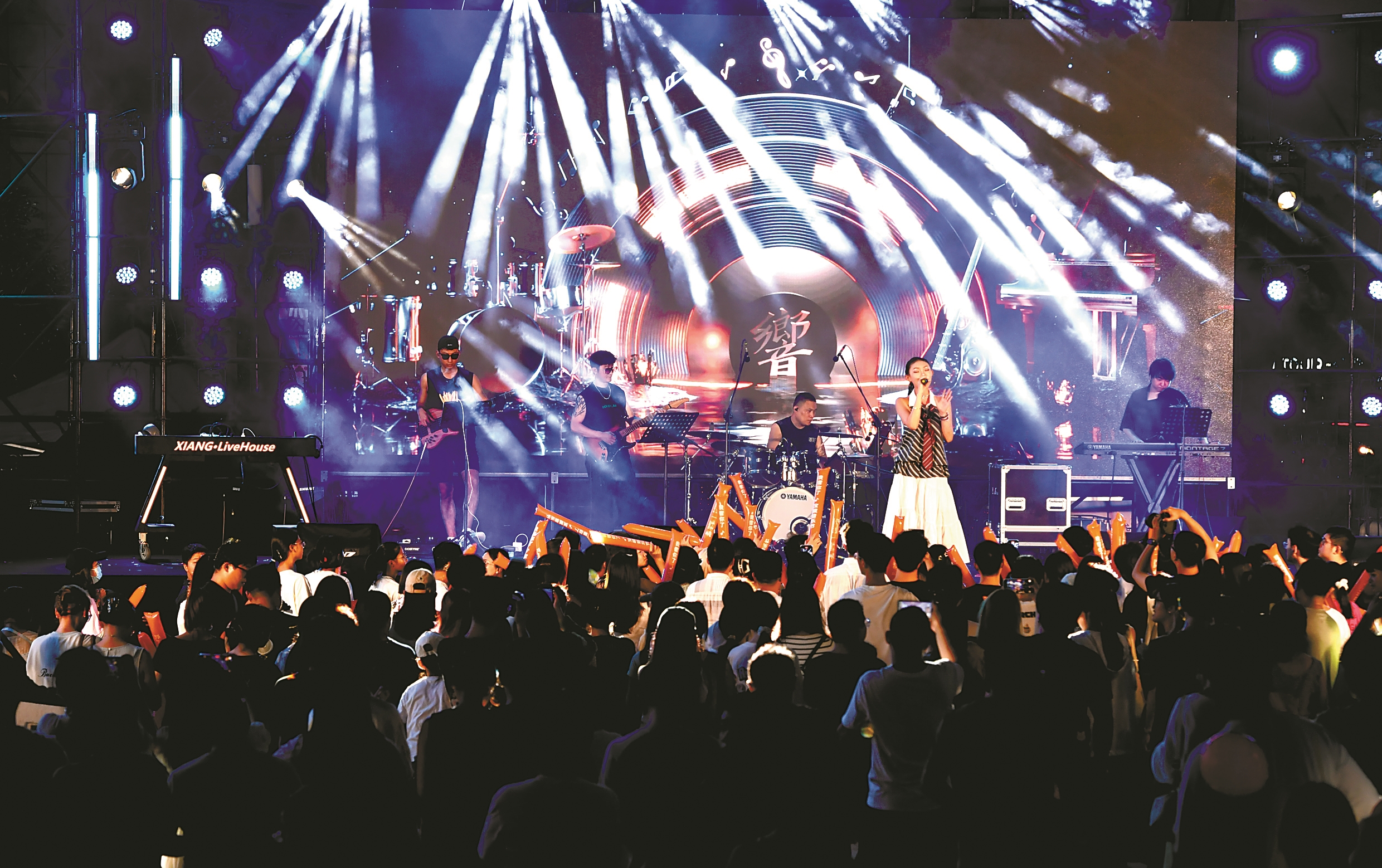 昨晚,位于鄞州区中河街道的宝龙广场举行了一场别开生面的主题音乐节。从温暖治愈的民谣、热血沸腾的摇滚,到动感炸裂的DJ打碟、浪漫缱绻的情歌演绎,再到活力十足的舞台串烧、趣味互动的喊麦接龙,多支人气乐队轮番登场,赢得观众阵阵掌声。作为“花开满城 星耀四明”公益展演精品点位之一,宝龙广场聚焦“消费+文化”,以音乐会、艺术展等形式吸引客流,激发夏日消费活力。(王博 曾家宇 摄)