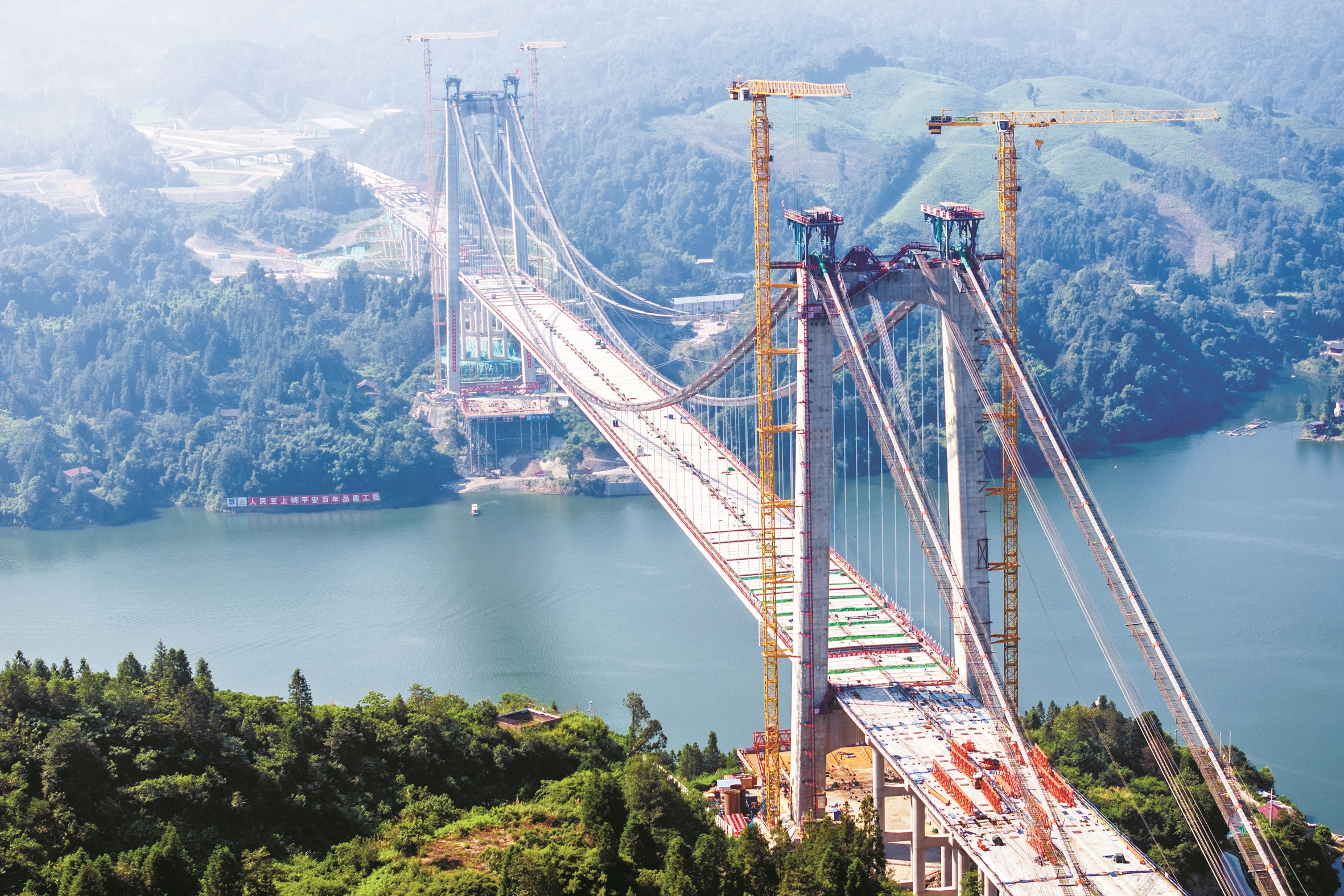 这是8月3日在怀化市沅陵县拍摄的施工中的张官高速洞庭溪沅水特大桥(无人机照片)。