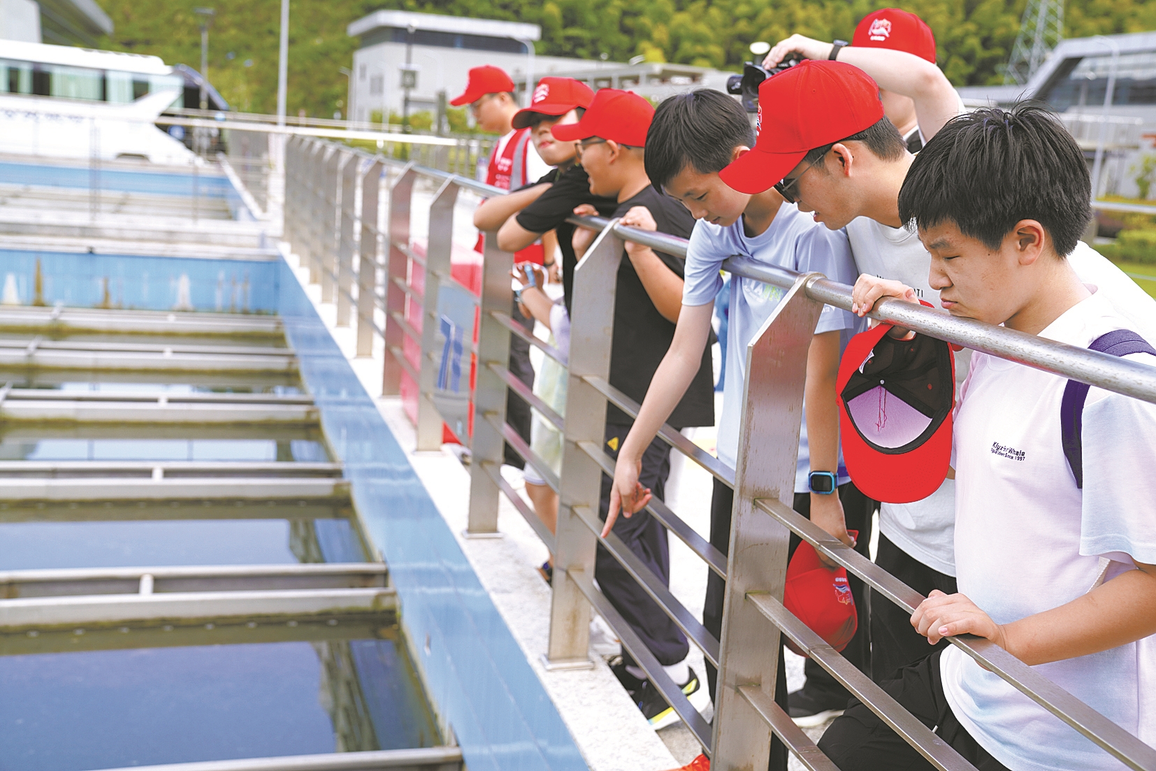 前天,一群戴着小红帽的孩子在父母的陪伴下,参观桃源水厂。他们是一群来自云南、四川、安徽等地的“小候鸟”,父母是宁波市水务环境集团工程建设一线工人。趁着暑假,“小候鸟”来到宁波,与久别的父母团聚。宁波水务环境集团工程建设分公司借工地临时党支部平台,组织孩子们参观父母工作的城市及建设的项目,了解父辈工作的意义,增进他们与宁波的感情。(戎美容 周燕倩 文/摄)