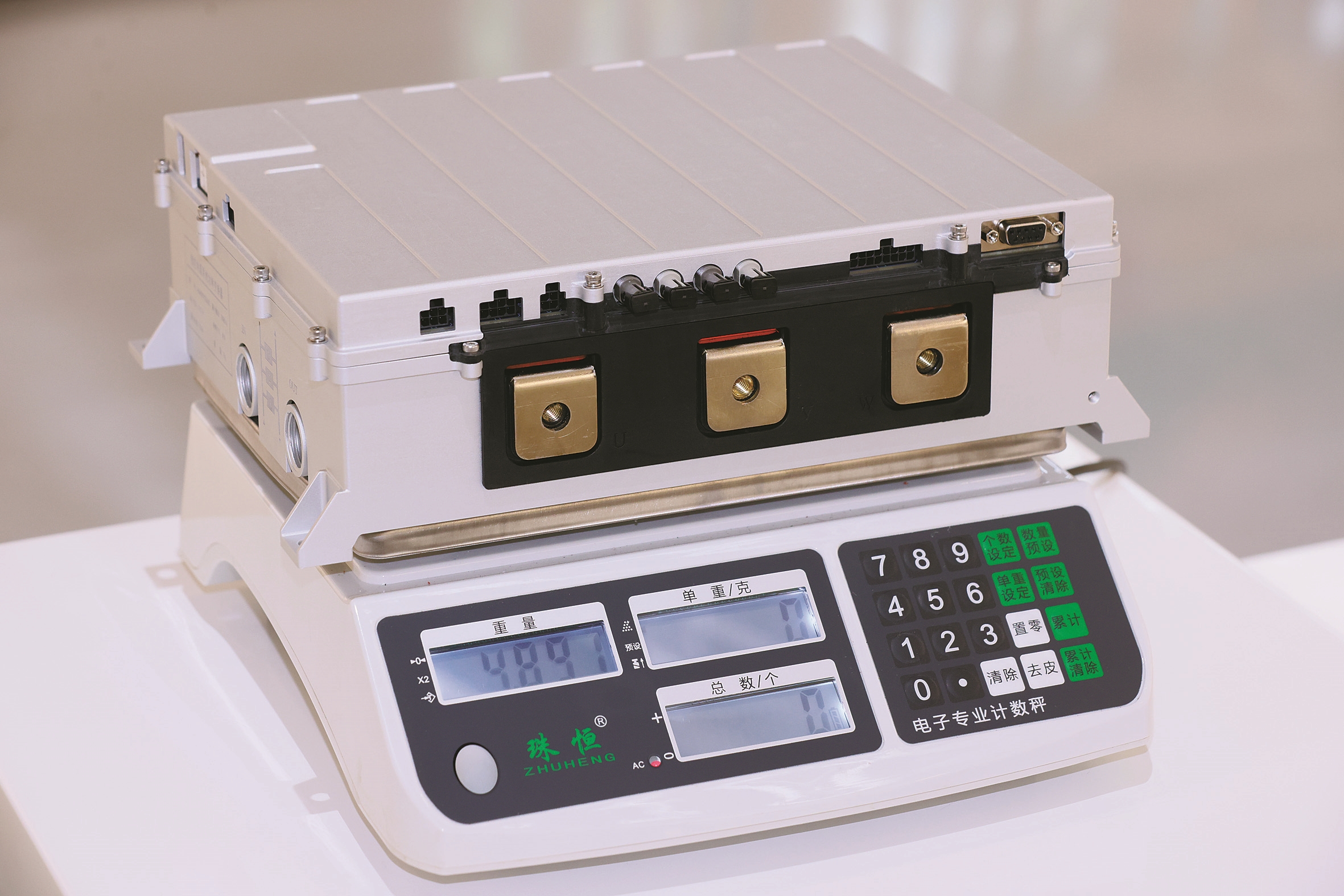 新一代电机控制器重量不足5千克。(成良田 张文宇 摄)
