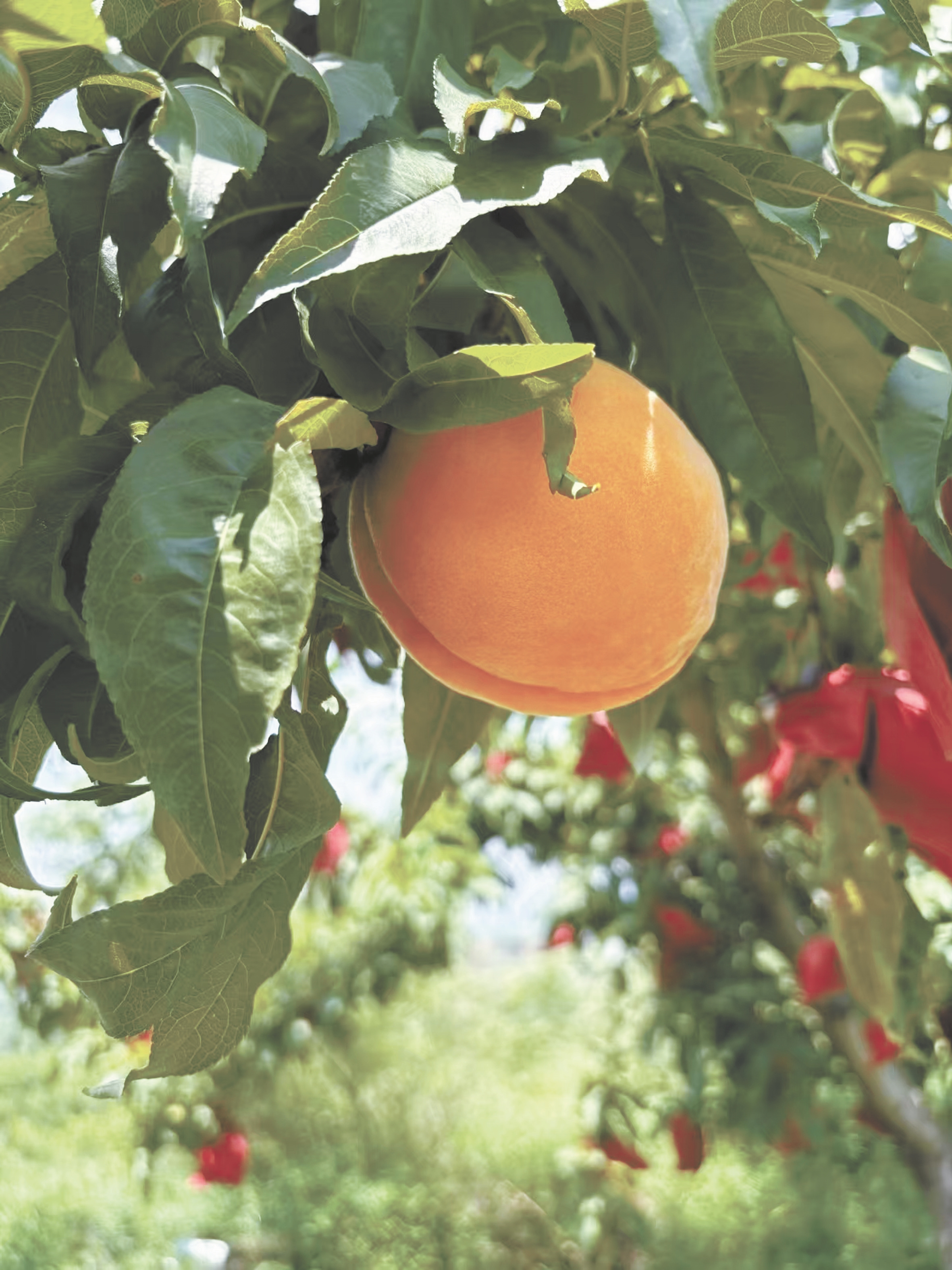 金灿灿的蜜桃挂满枝头,在阳光下泛着诱人的光泽。