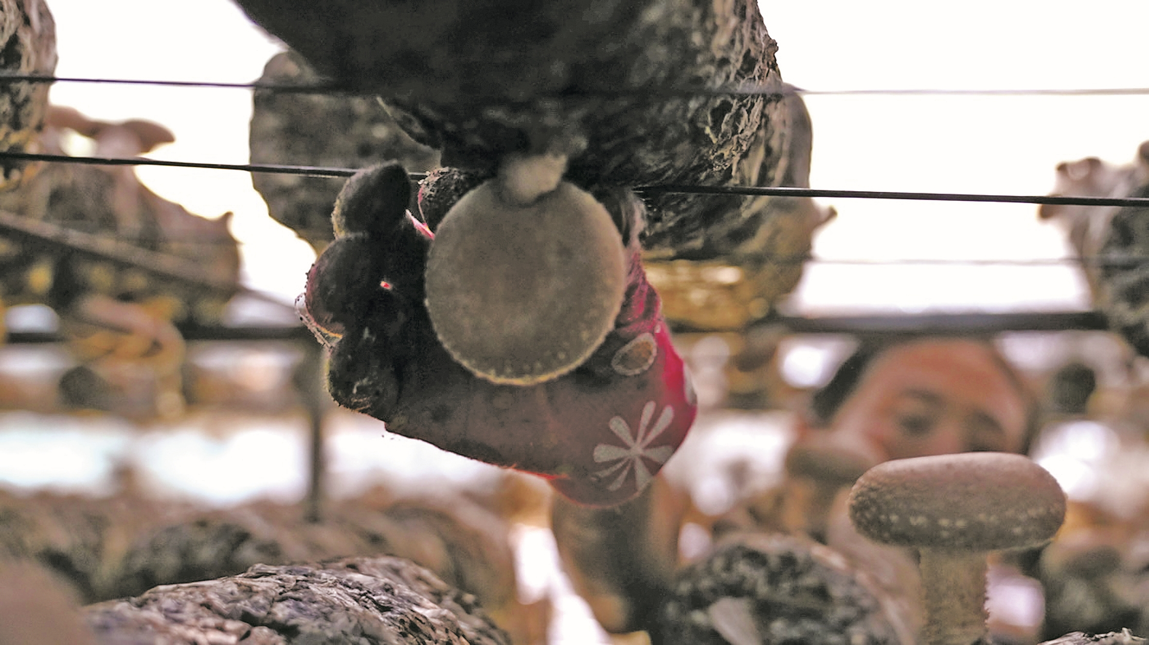 “这茬菇长得可真俊!”她利落地掰下一朵肥厚的枣木香菇,心里盘算着:看这长势,采摘、分拣……每道工序都少不了人,一年稳赚5万多元,加上5亩地流转所得的7500元,这光景就像芝麻开花——节节高。
