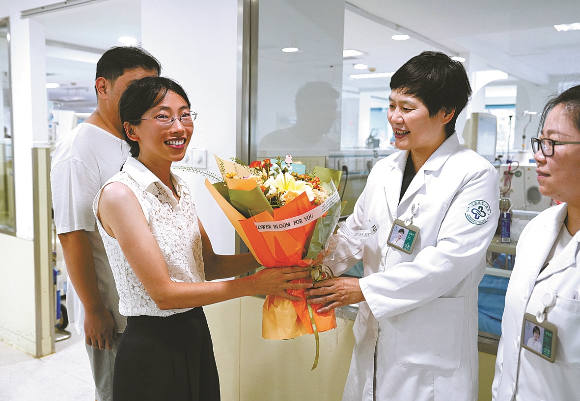 昨日上午10点,宁波大学附属第一医院血透中心,阳光透过玻璃窗,透析机的运转声规律而平稳。肾内科主任边学燕正在查房,忽然被一声轻柔的呼唤叫住——“边医生,节日快乐!”