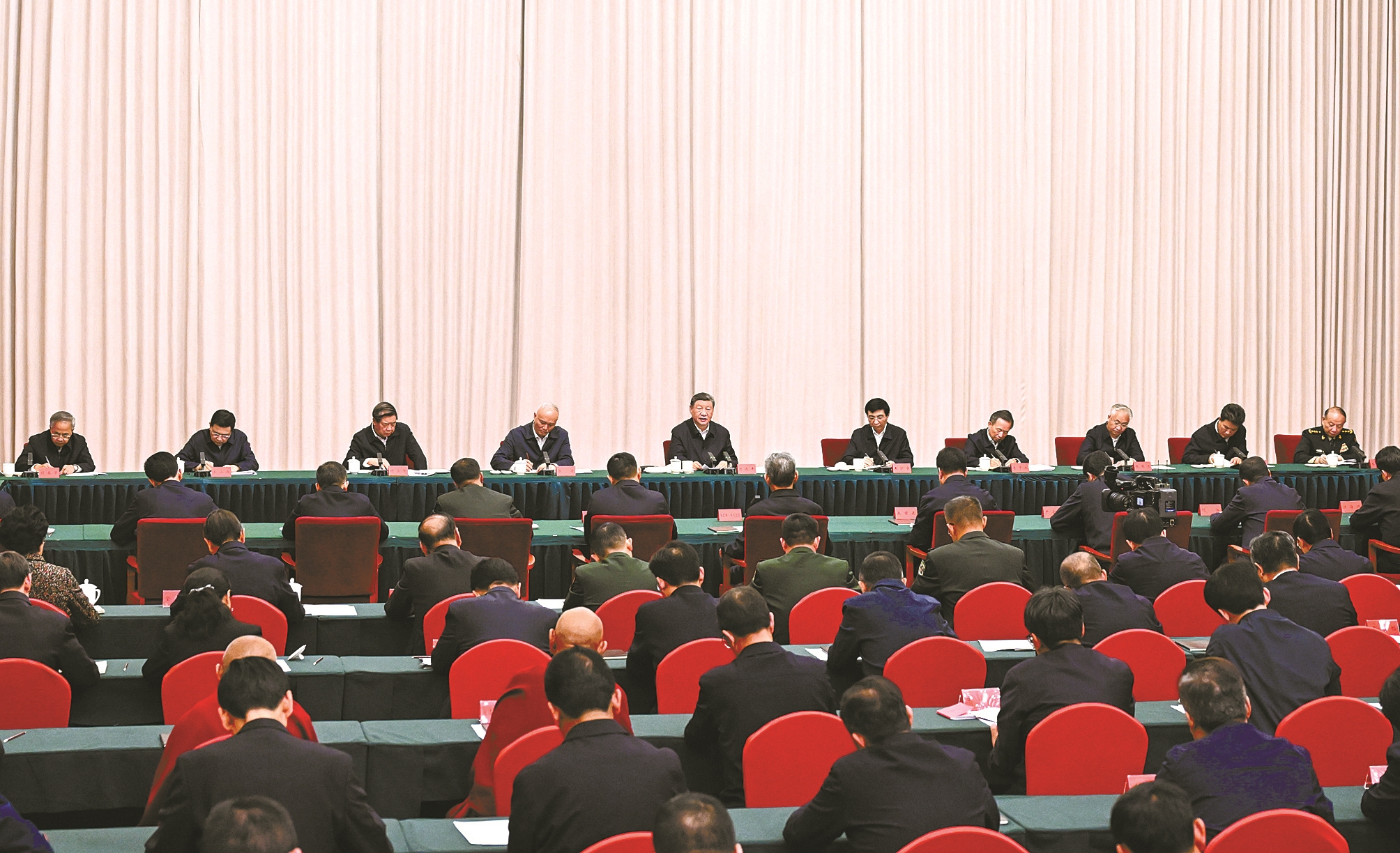 8月20日下午,率中央代表团出席西藏自治区成立60周年庆祝活动的中共中央总书记、国家主席、中央军委主席习近平在拉萨听取西藏自治区党委和政府工作汇报,发表了重要讲话。(新华社记者 谢环驰 摄)
