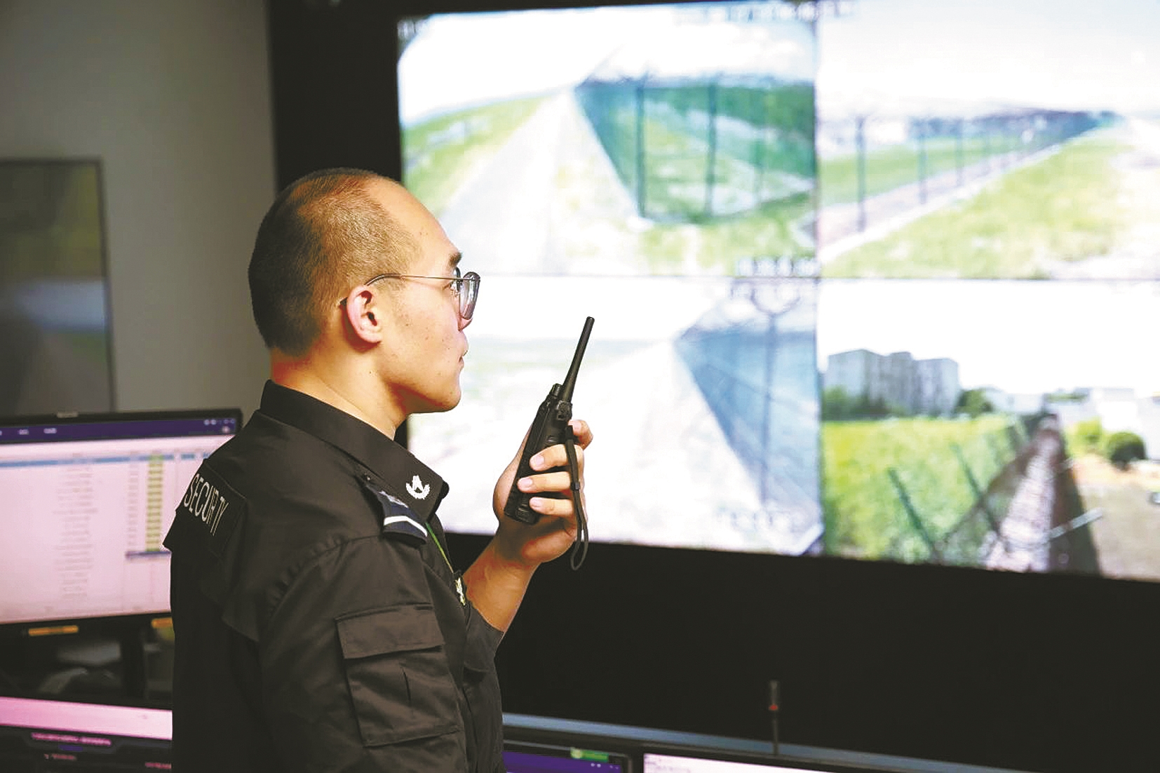 作为宁波栎社国际机场安检护卫部的一员,张瀚平常的工作就是紧盯监控大屏,观察机场围界边的“风吹草动”。