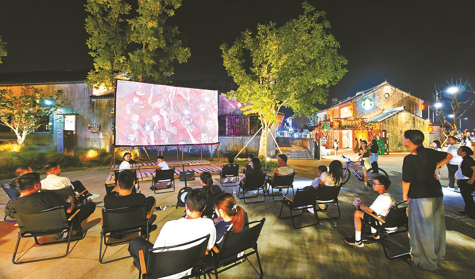 昨晚,“浙BA”城市争霸赛宁波主场对阵永康的赛事激战正酣,鄞州区东钱湖镇建设村同步架起巨型幕布,打造了一处独具烟火气的户外观赛区。夏夜晚风拂面,游客们一边品尝地道美食,一边为赛场上的球员呐喊助威,现场欢呼声此起彼伏,气氛热烈非凡。