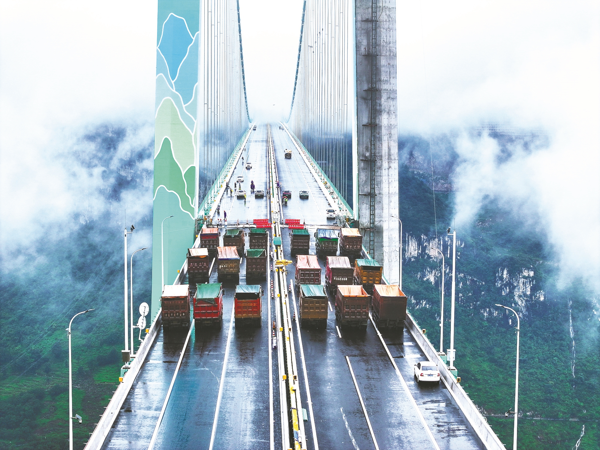 8月21日,在建世界第一高桥——贵州花江峡谷大桥正式启动荷载试验。2022年开工建设的花江峡谷大桥,跨越被誉为“地球裂缝”的花江大峡谷,是贵州省六枝至安龙高速公路的控制性工程。大桥为钢桁梁悬索桥,全长2890米,其中主桥跨径1420米,桥面至水面高度625米。