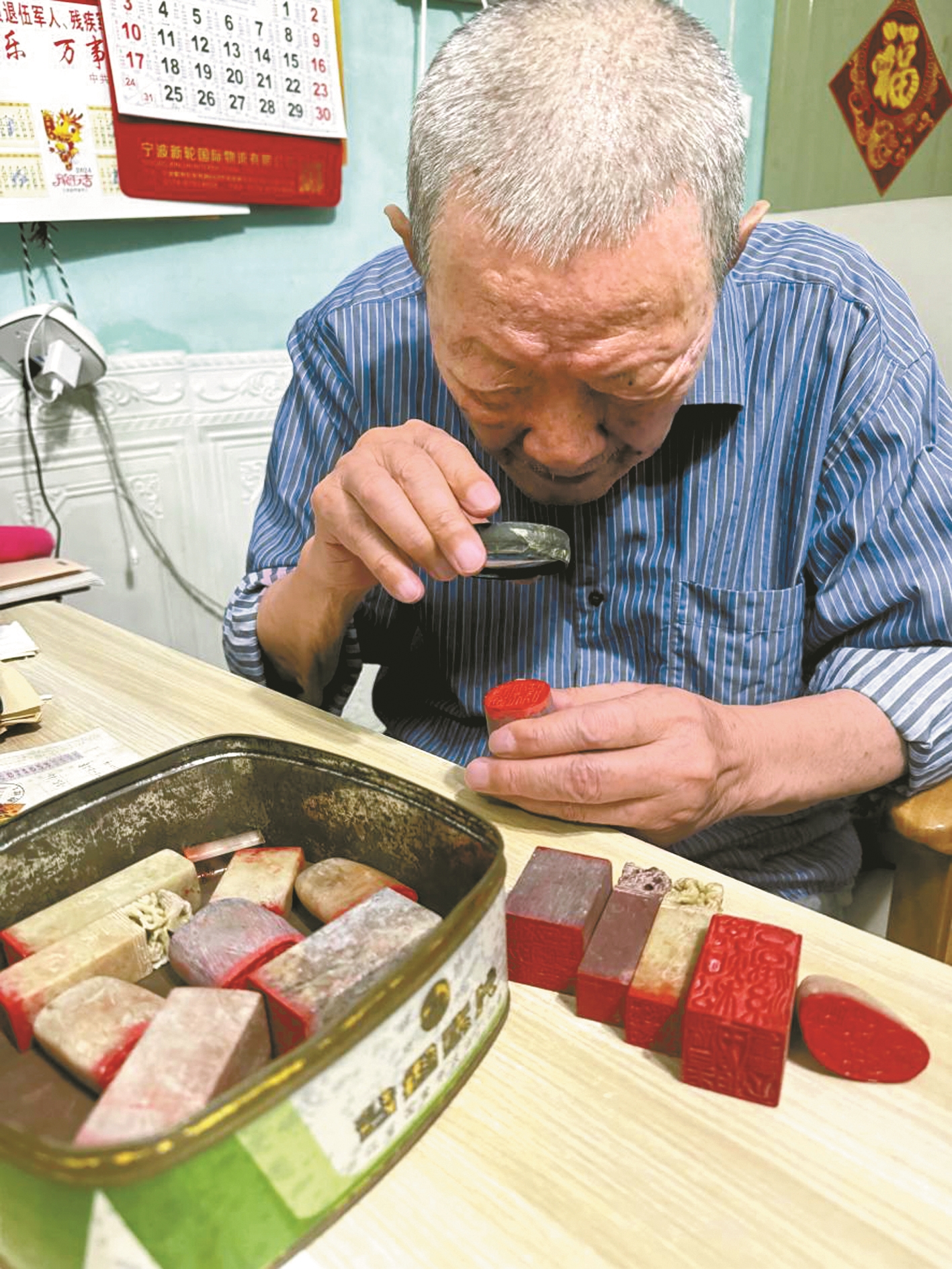 采访接近尾声时,程老从铁盒中拿出一枚枚印章,在纸上为记者一一盖下,作为留念。他说,希望这些见证了他革命岁月的印章也能成为记者心中的一份珍贵记忆。