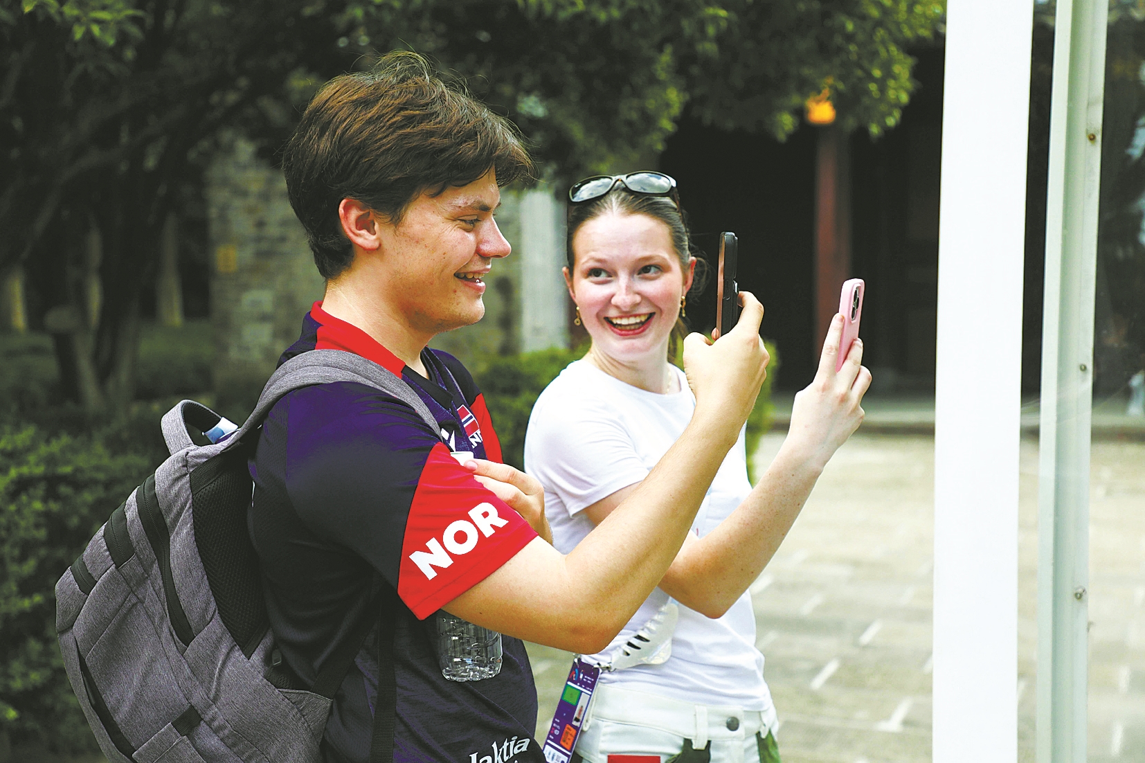 赛事期间,“友好”“感谢”经常在场馆内外被听见。这里有精通多国语言的学生志愿者提供细致的翻译服务;有中英双语的宁波旅游手册,方便外国运动员外出游玩;有细致周到的赛事服务,让每个人都宾至如归。