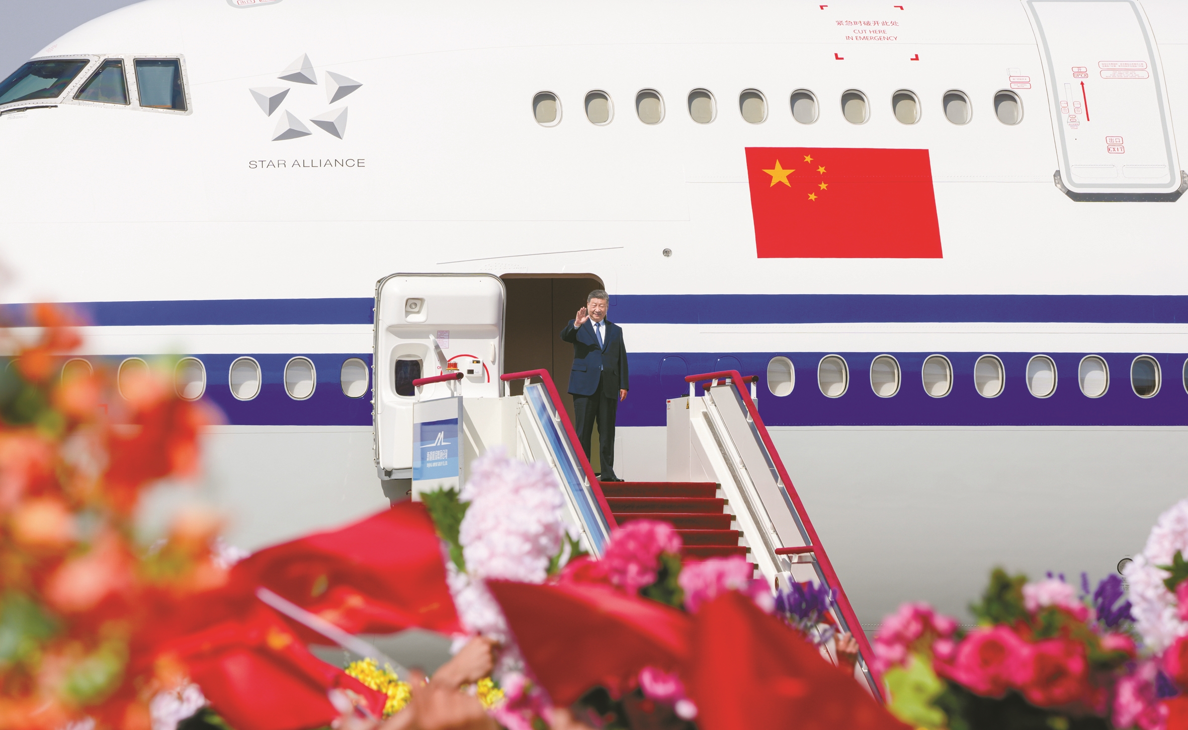 新疆维吾尔自治区党委书记陈小江、自治区人民政府主席艾尔肯·吐尼亚孜、自治区人大常委会主任祖木热提·吾布力、自治区政协主席努尔兰·阿不都满金、新疆生产建设兵团政委何忠友等在舷梯下迎候。习近平走下舷梯时,少先队员献上鲜花。各族群众代表身着民族服饰,载歌载舞,欢迎总书记的到来,表达对总书记的衷心祝福。