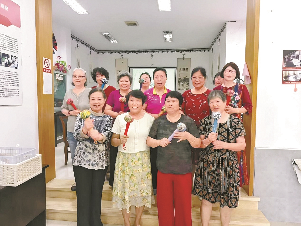 社区居民们亮出了自己制作的“廉意养生锤”。(丁连连 摄)