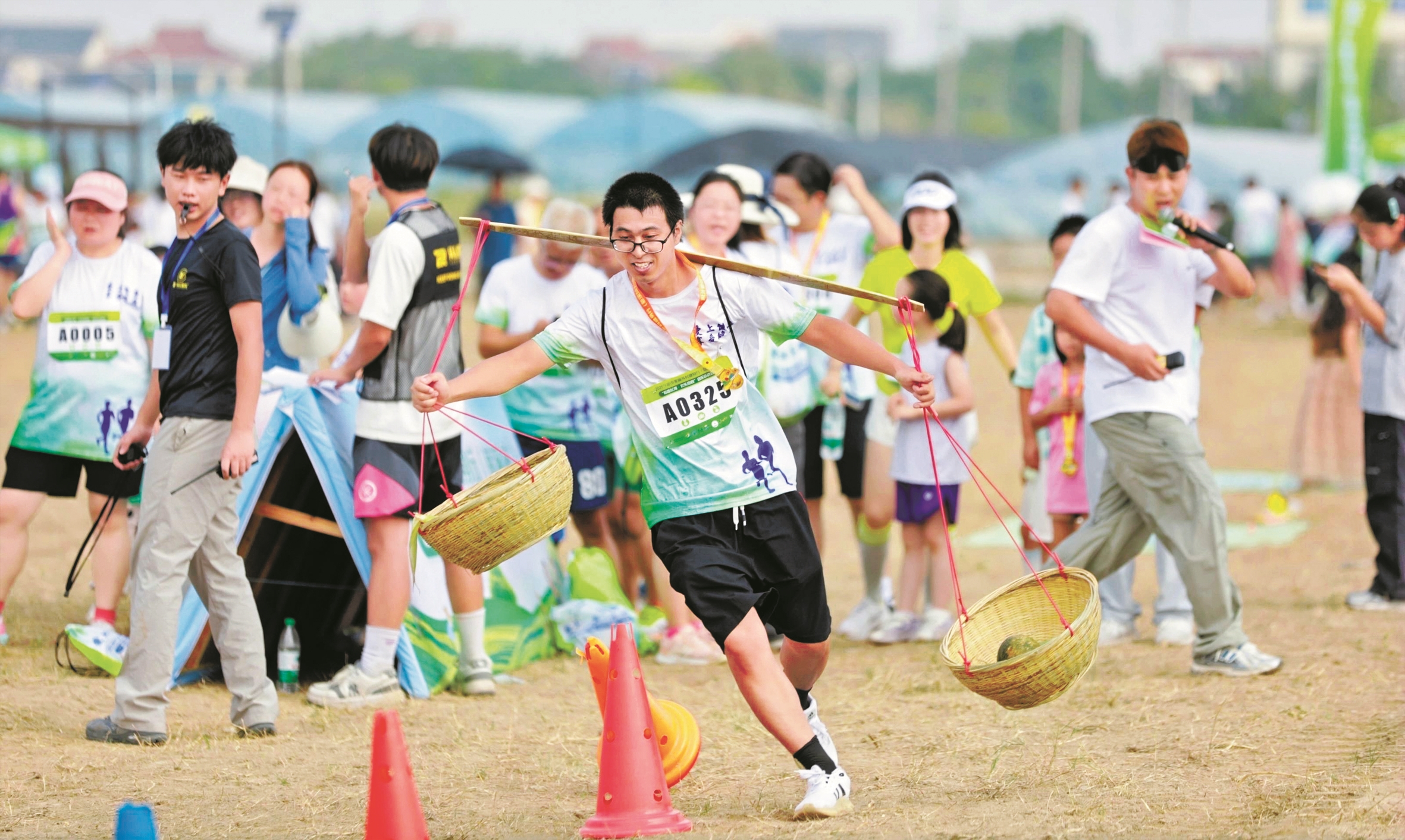 昨日上午,2025年宁波市美丽乡村健身行(慈溪站)走进慈溪市长河镇,一场以“稻香长河·欢乐田园”为主题的音乐运动会让300余名健身爱好者穿行田野之间,沉浸式感受丰收的喜悦。同步进行的“农趣农味”全民互动运动会人声鼎沸,男女老少齐上阵,共庆丰收、共享喜悦。现场还举办了“星耀四明 越韵CI音”公益展演活动。