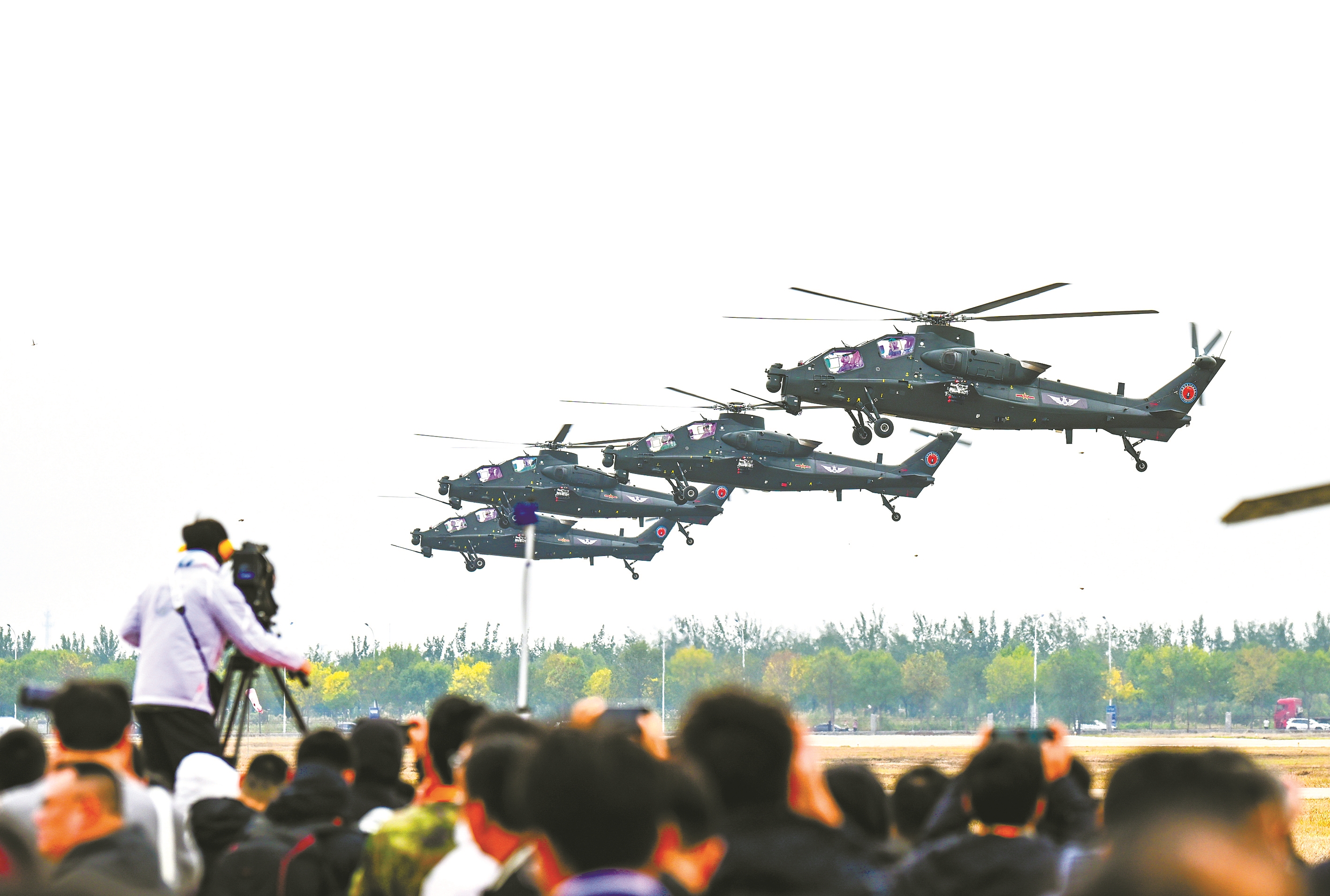 10月16日,在第七届中国天津国际直升机博览会开幕式上,陆军“风雷”飞行表演队进行飞行表演。
