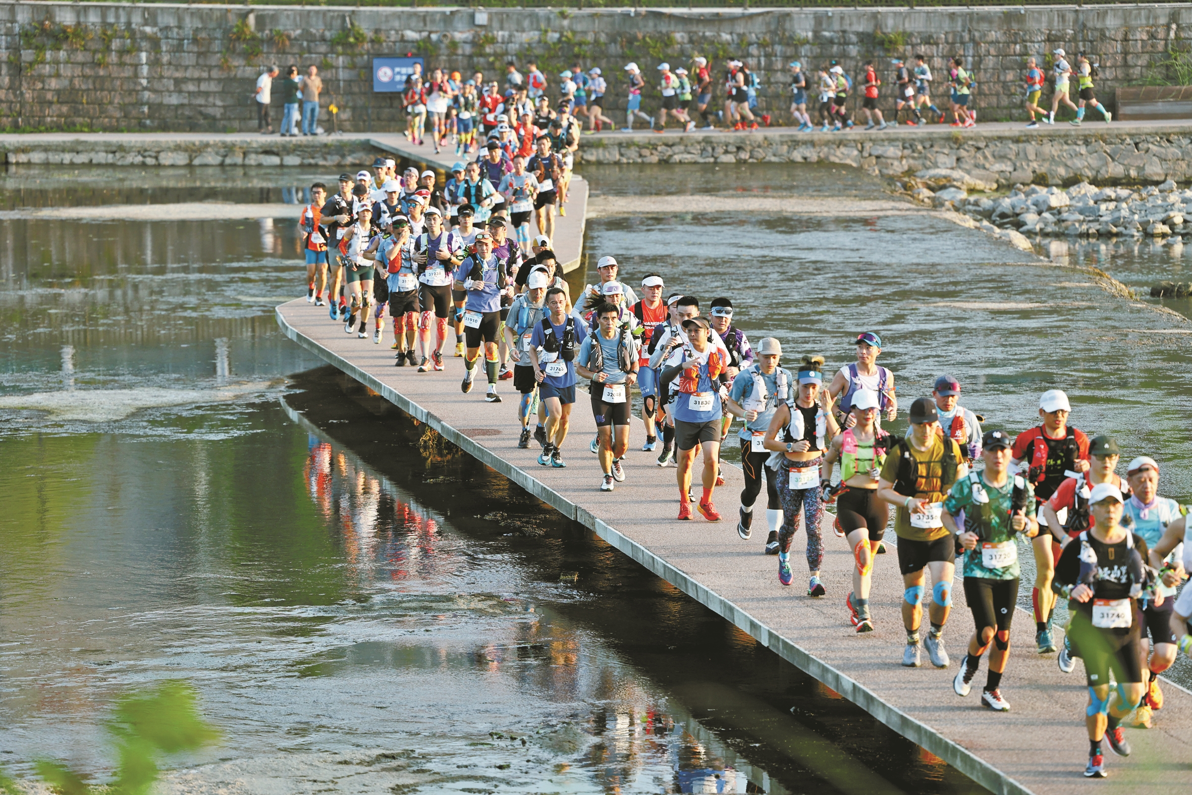 日前,2025宁海越野挑战赛在西门城楼鸣枪开跑。今年是宁海越野挑战赛举办第12年,该赛事也是UTMB世界系列赛的重要一站,吸引了全球众多顶尖越野跑者齐聚宁海展开挑战。(唐严 吴帅 摄)