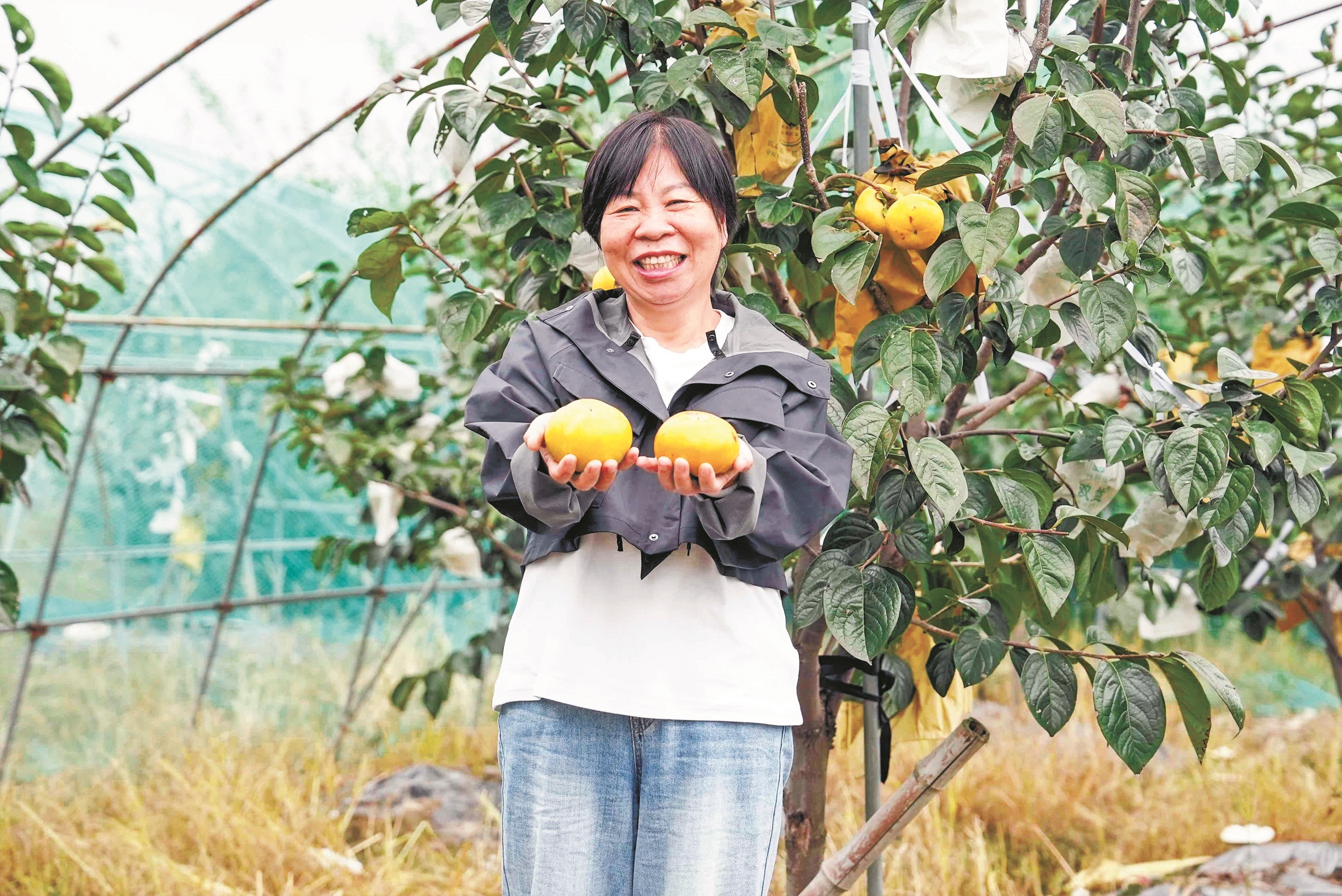 昨日,在江北区慈城镇王家坝村的晨源灵芝专业合作社的果园里,一排排低矮的柿树上果实压枝,青黄透亮的甜脆柿已成独特风景。据合作社负责人罗幼君介绍,园内700余棵柿树今年预计可收获1.7万公斤果实,产量较去年稳步提升,目前正是大量上市的时候。