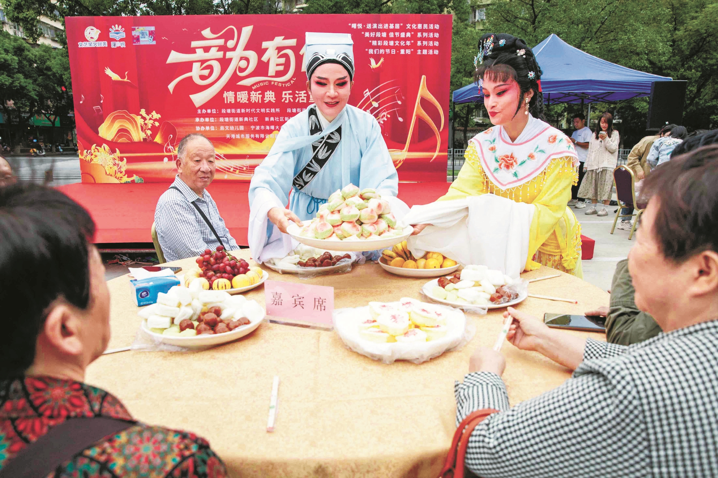 昨日,海曙区段塘街道新典社区精心策划了一场“文艺+共餐”重阳温情盛宴,将节日的祝福与社区的暖意,送到老人心坎里。