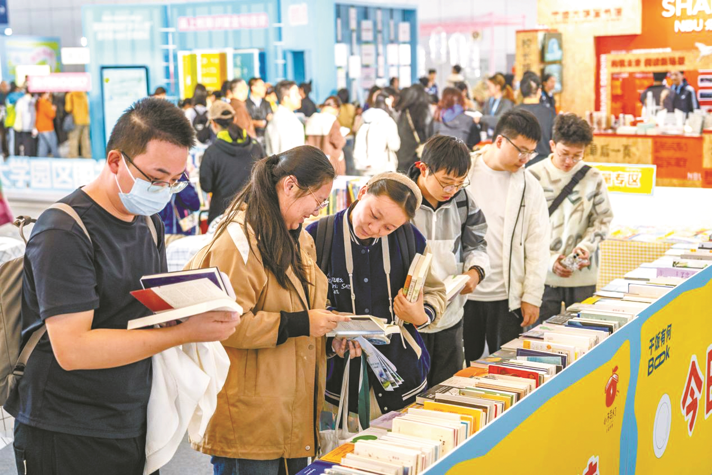 昨天,宁波国际会展中心5号馆的“精神食堂”里人头攒动,一场贯穿本届浙江书展全程的“城市萤火虫”换书大会正在进行。据了解,“城市萤火虫”自2014年创办以来,每年都会融入时下年轻人喜欢的元素。从“遨游星空”到“宋潮儿”,从“循环超市”再到今年的“干饭”概念,换书大会在保持“以书会友”核心理念的同时,让阅读越来越有“年轻范”。图为读者正在换书。