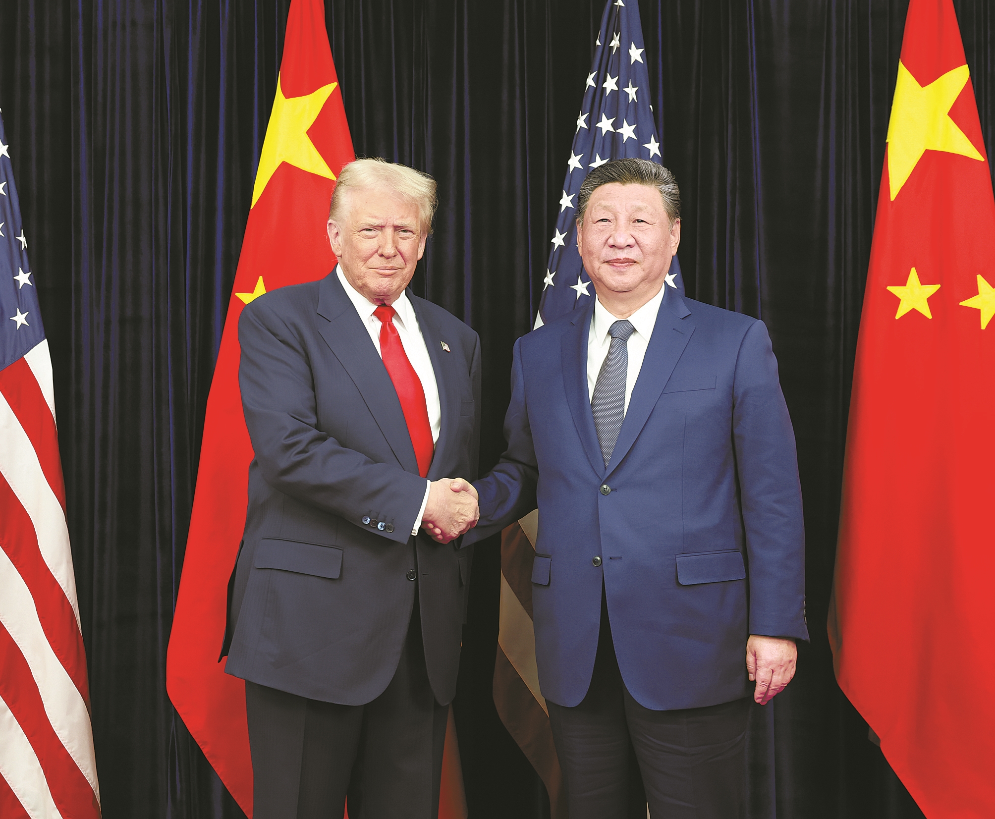 当地时间10月30日,国家主席习近平在釜山同美国总统特朗普举行会晤。(新华社记者 黄敬文 摄)