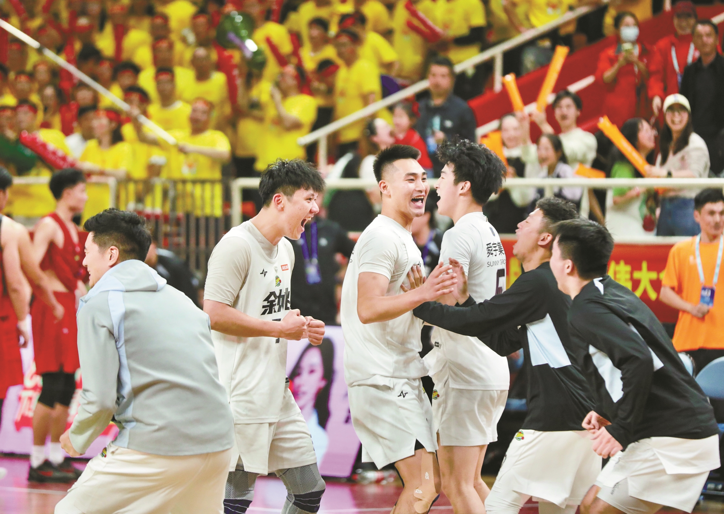 当终场哨声与欢呼声在主场轰然炸响,所有人从座位上一跃而起——雷鸣般的呐喊震得场馆仿佛都在震颤,这一刻,属于逆转翻盘的余姚队!