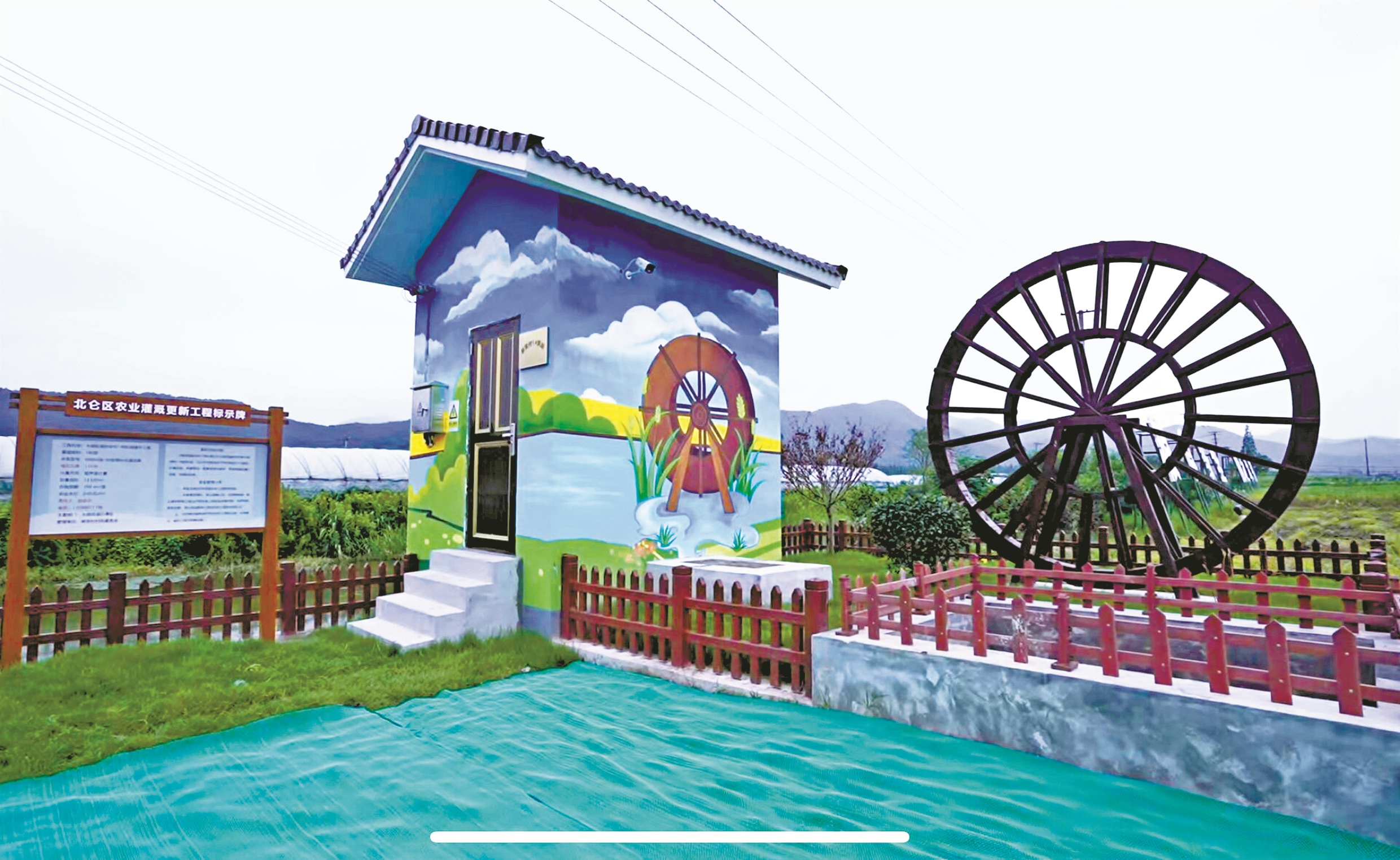 鄞州区城杨村1号泵站经过精心改造,既是灌溉附近300亩良田的“主力军”,也是一座开放的乡村文化驿站。泵站内,农业灌溉文化墙清晰勾勒出当地灌溉发展史,让这座小泵站成为独具特色的水文化窗口和网红打卡地。