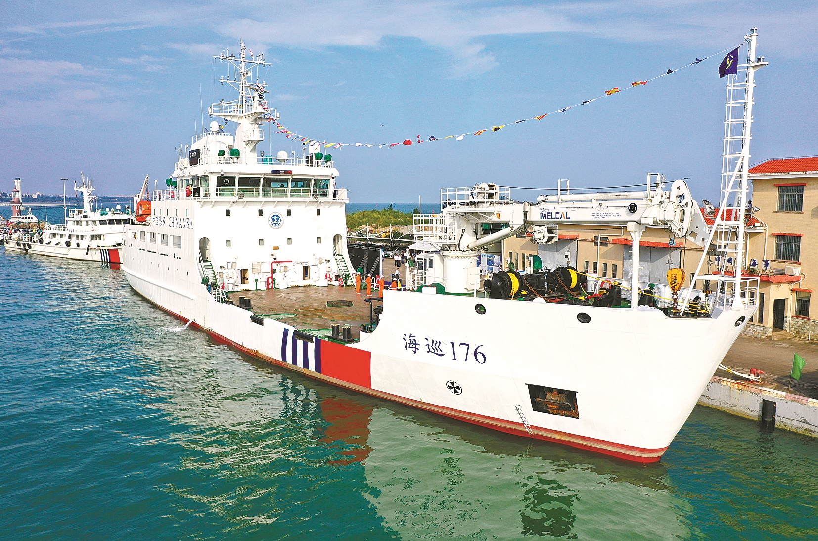 据了解,“海巡176”轮总长75.2米,型宽14米,满载排水量2360吨,是目前全国交通运输系统最大最先进的航标作业船。该船列编后将承担南海海区航标布设、维护任务,为我国在南海的海洋资源开发、科研考察、海上执法等活动提供可靠的航海保障。