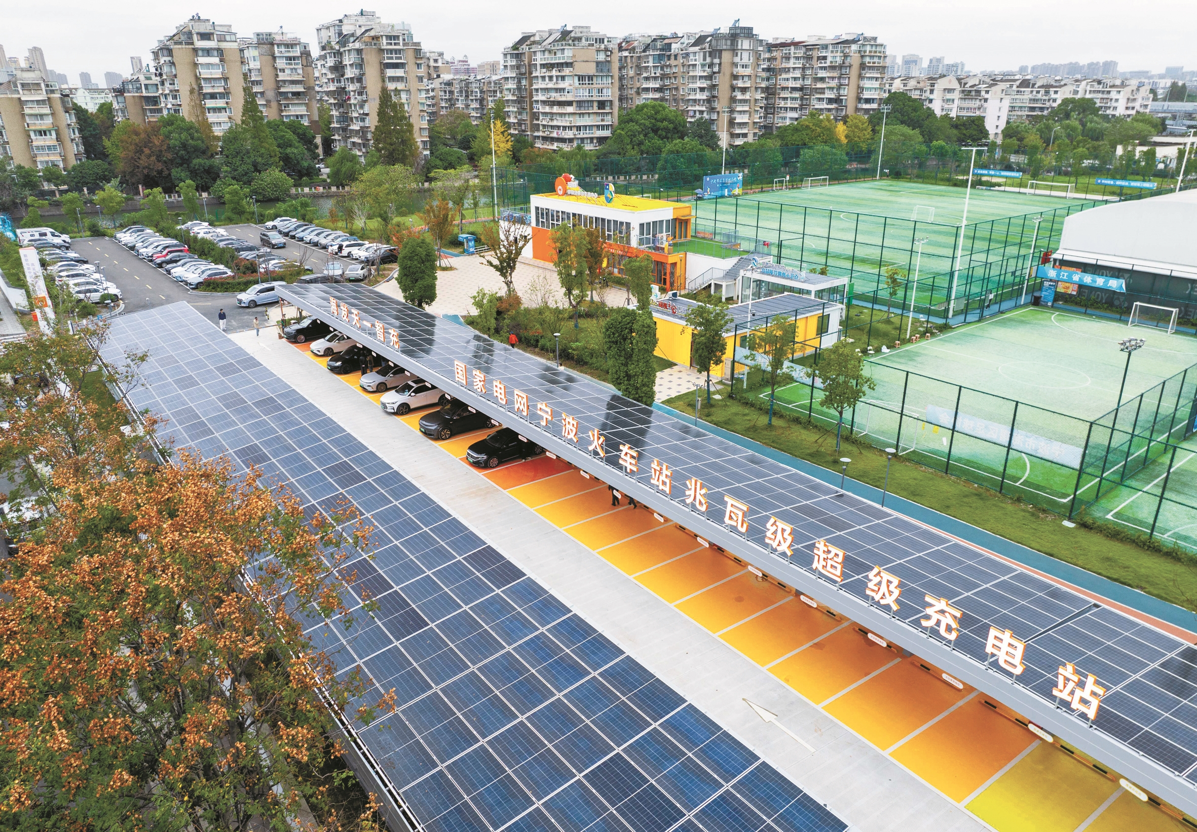昨天,国家电网宁波火车站兆瓦级超级充电站投入试运营。全站共提供充电车位68个,包括36个超充枪、30个大功率枪及2个具备放电功能的V2G桩,单枪最快充电速度可达“一秒一公里”,是目前浙江省内规模最大的城区超充站。(赵煜 唐瑾瑾 周斌 摄)