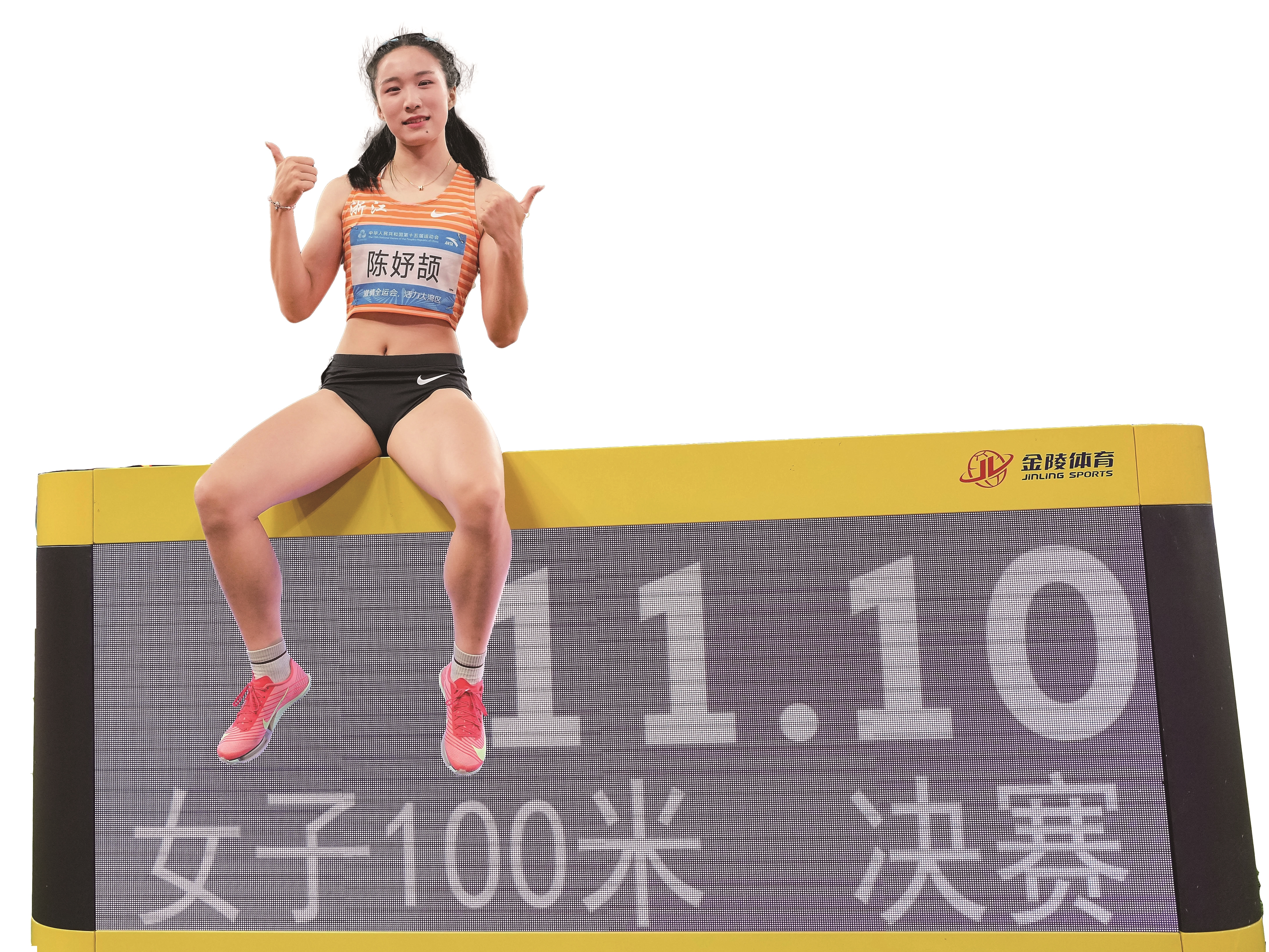 本报讯(记者龚旭琪)昨日,广东省奥体中心,第十五届全国运动会田径项目进入第三个比赛日。在女子100米决赛中,首次参加全运会的宁波小将陈妤颉发挥出色,以11秒10的成绩,刷新亚洲青年纪录,成为全运会历史上最年轻的百米“女飞人”。
