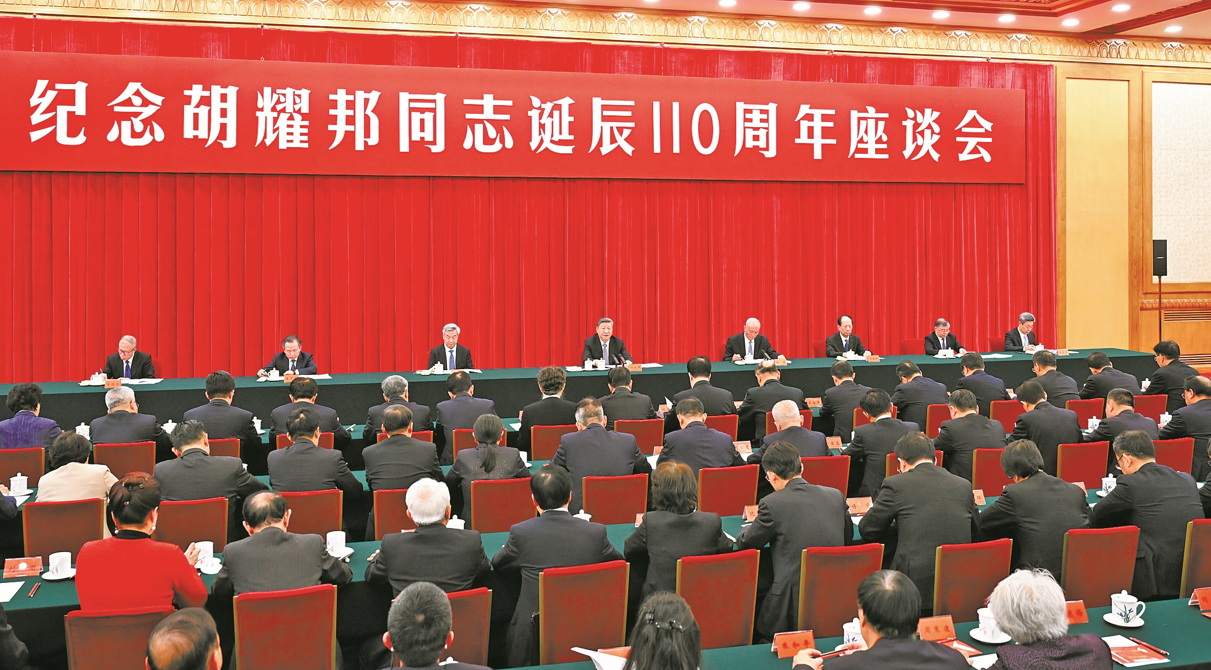 11月20日,中共中央在北京人民大会堂举行纪念胡耀邦同志诞辰110周年座谈会。习近平、蔡奇、李希等出席座谈会。(新华社记者 谢环驰 摄)