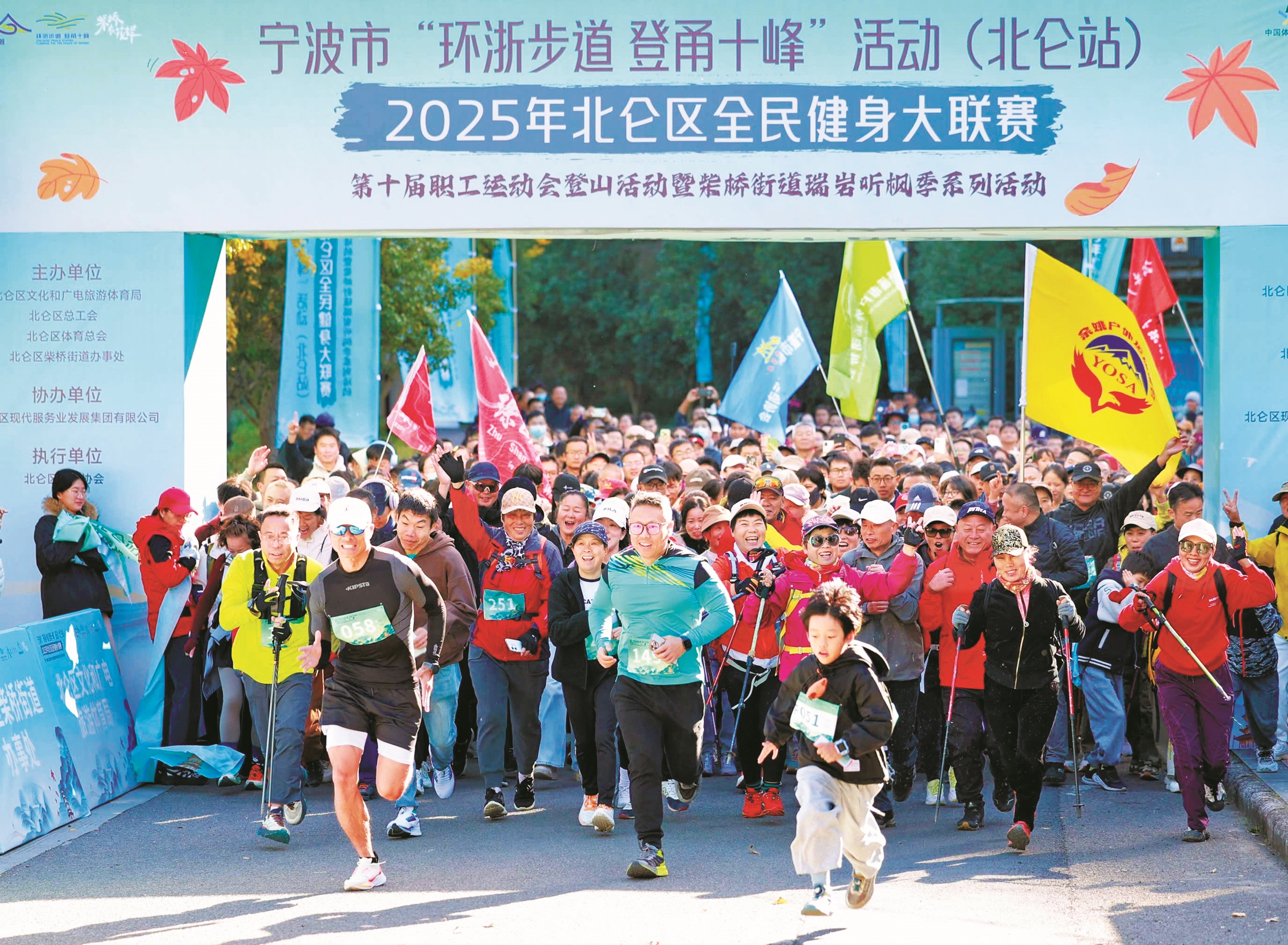 前日,北仑区柴桥街道九峰山瑞岩景区红叶漫山、欢声如潮。宁波市“环浙步道 登甬十峰”(北仑站)、北仑区全民健身大联赛登山活动、柴桥街道“瑞岩听枫季”三项活动同期启幕,700名本地运动爱好者与50名在甬外籍人才齐聚2000亩红枫林,以登山为媒赏美景。其中“瑞岩听枫季”活动的打卡将持续至12月6日,其间,市民可前往景区领取任务卡,完成红枫、古寺等打卡任务后,即可兑换专属文创礼品。(许天长 文/摄)