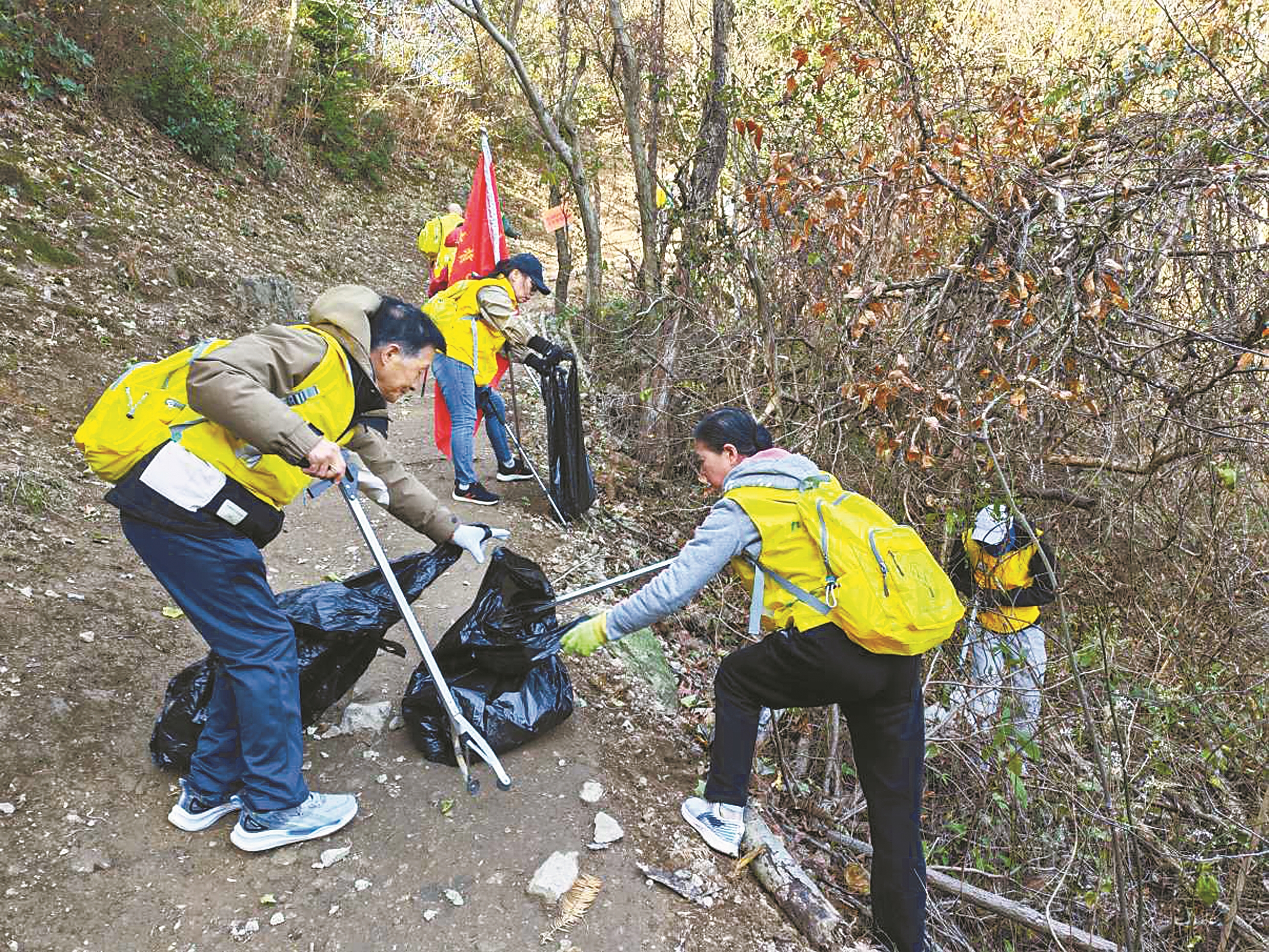 “黄背包”环保志愿者们当即决定集结力量,为青山“减负”。