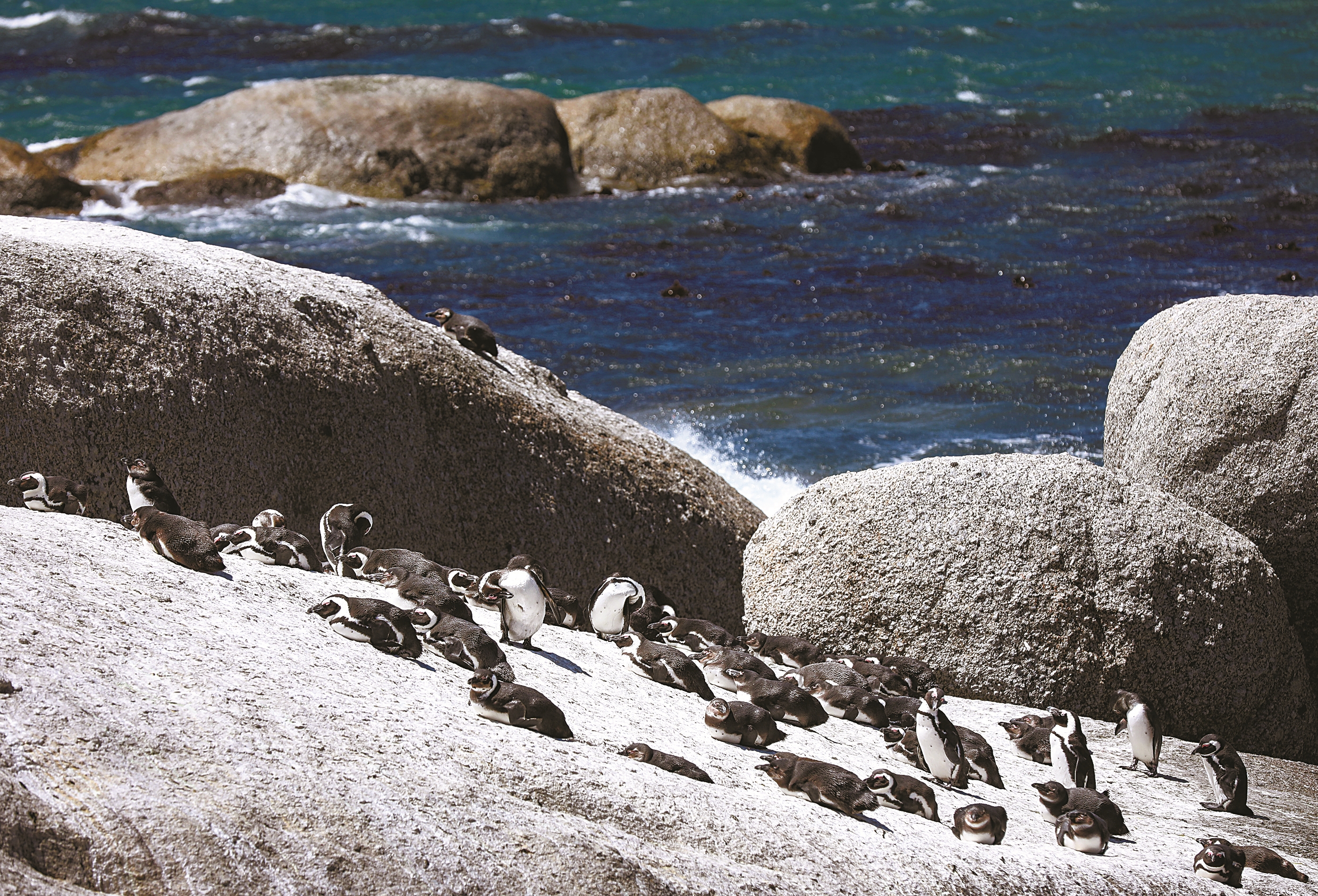 非洲企鹅学名为斑嘴环企鹅,是唯一分布于非洲的企鹅。2023年,非洲企鹅的全球繁殖对数量首次跌破1万对,促使世界自然保护联盟在2024年将其列入濒危物种红色名录,评级为“极危”。南部非洲海岸鸟类保护基金会等南非环保组织在今年6月表示,按照目前的减少速度,野生非洲企鹅很可能到2035年就会灭绝。