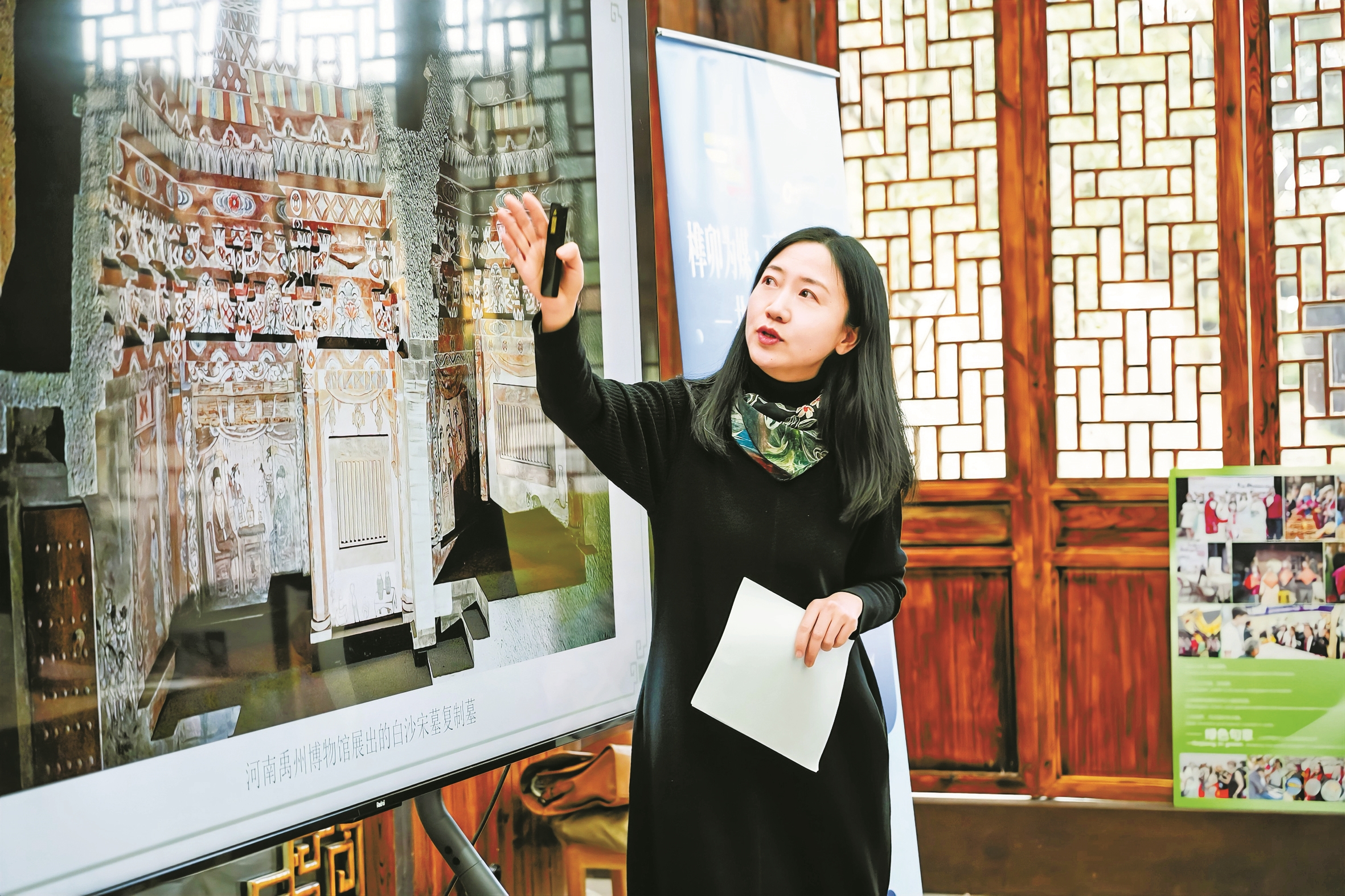 为了让外国友人更深入地理解中外建筑的差异,宁波大学潘天寿建筑与艺术设计学院副教授姚颖以“西方砖石结构与中国木构榫卯”为切入点,带来了一场精彩的中外古建保护分享讲座。
