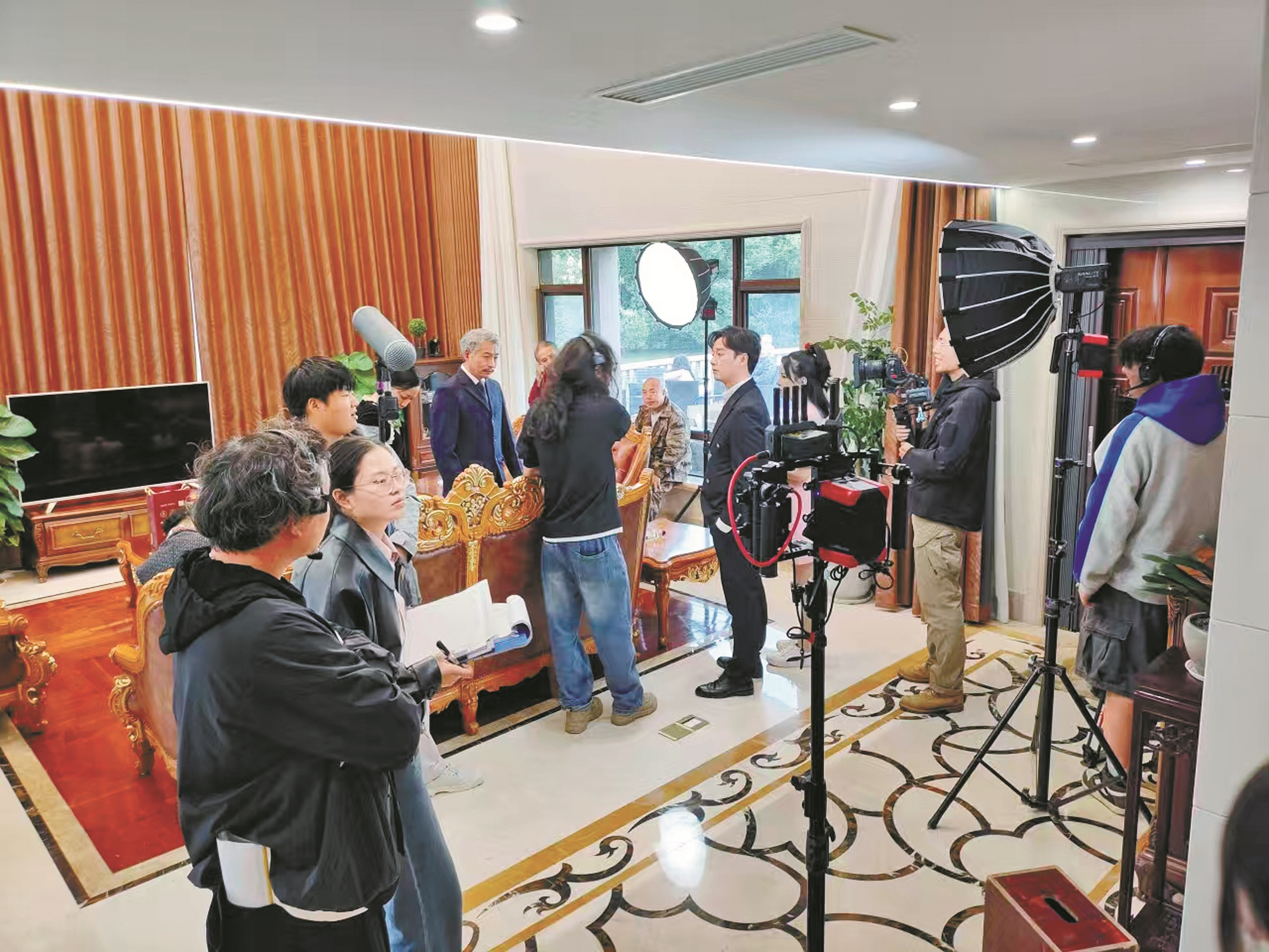 连日来,位于邱隘镇的浅水湾影视文化产业园内,网剧拍摄正酣。