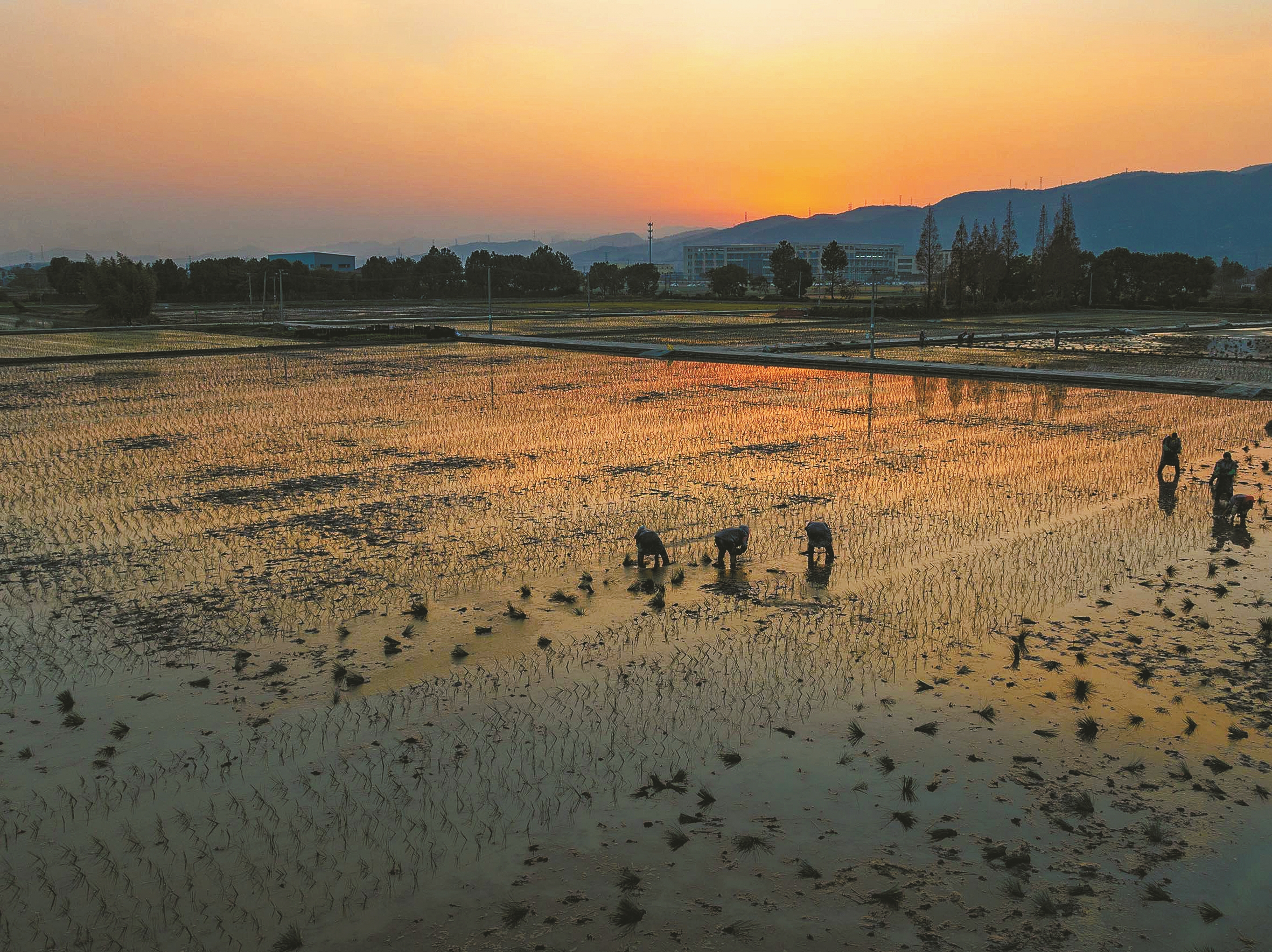 深秋时节,海曙区古林镇广阔的田野间一派繁忙景象。晚稻颗粒归仓后,农户并未停下忙碌的步伐,而是积极投身到蔺草插秧的农事中,田间地头随处可见弯腰劳作的身影。