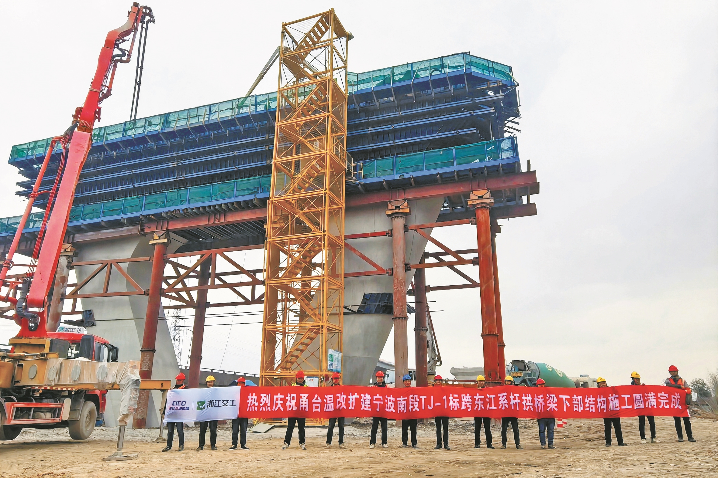 前日,随着左幅最后一榀盖梁浇筑完成,甬台温高速改扩建宁波南段关键控制性工程——东江系杆拱桥下部结构施工圆满完成,标志着项目建设实现重要阶段性突破。东江系杆拱桥采用左右幅分离式设计,两座主桥均为跨径190米的下承式网状吊杆提篮拱结构。该桥型为浙江省高速公路首次应用,并在国内同类型高速公路桥梁中跨度居首。