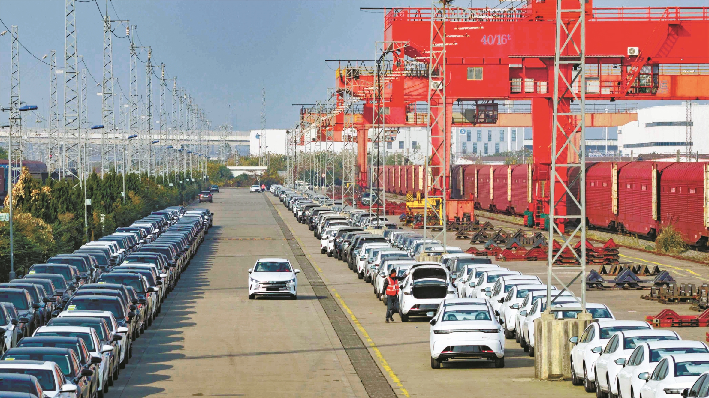 昨天,在宁波北站(货运火车站),一辆辆汽车驶下专列,即将转运至宁波舟山港。作为浙江省规模最大、设备最完善的货运站之一,宁波北站承担着重要的物流枢纽功能,其多式联运集装箱班列可通达深圳,混装货物班列开行密集。数据显示,截至昨日,今年经宁波北站和宁波舟山港出口的车辆累计达75639辆,同比增长47.2%。(陈结生 李越 陈恒 摄)