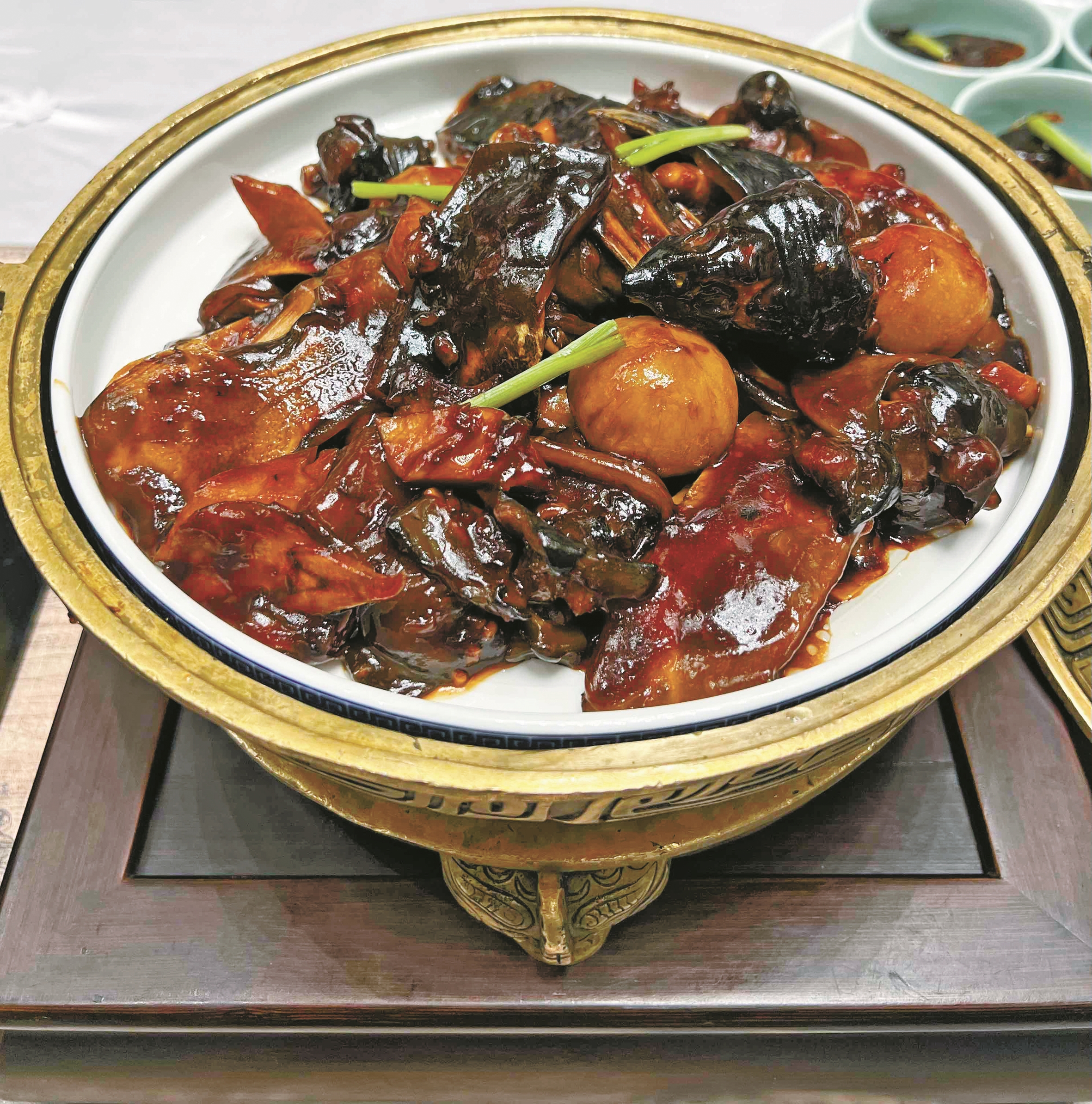 作为宁波传统十大名菜中的头牌,独占鳌头冰糖甲鱼,吃起来软糯润口,香甜酸咸,风味独特。