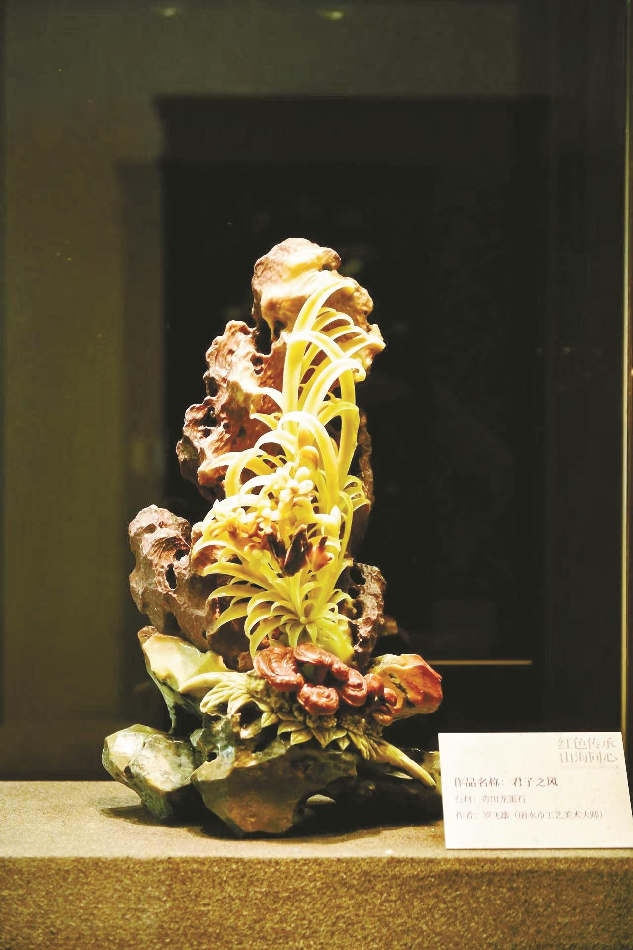 12月9日至20日,“红色传承·山海同心”青田石雕宁波展在党章学堂三号馆的樵斋书房举行。近30件石雕精品,从泛着青莹光泽的封门青原石、温润如玉的灯光冻,到倪东方、张爱廷等国家级工艺美术大师的传世之作,静静陈列,无言述说着“石出青田”的千年匠心。