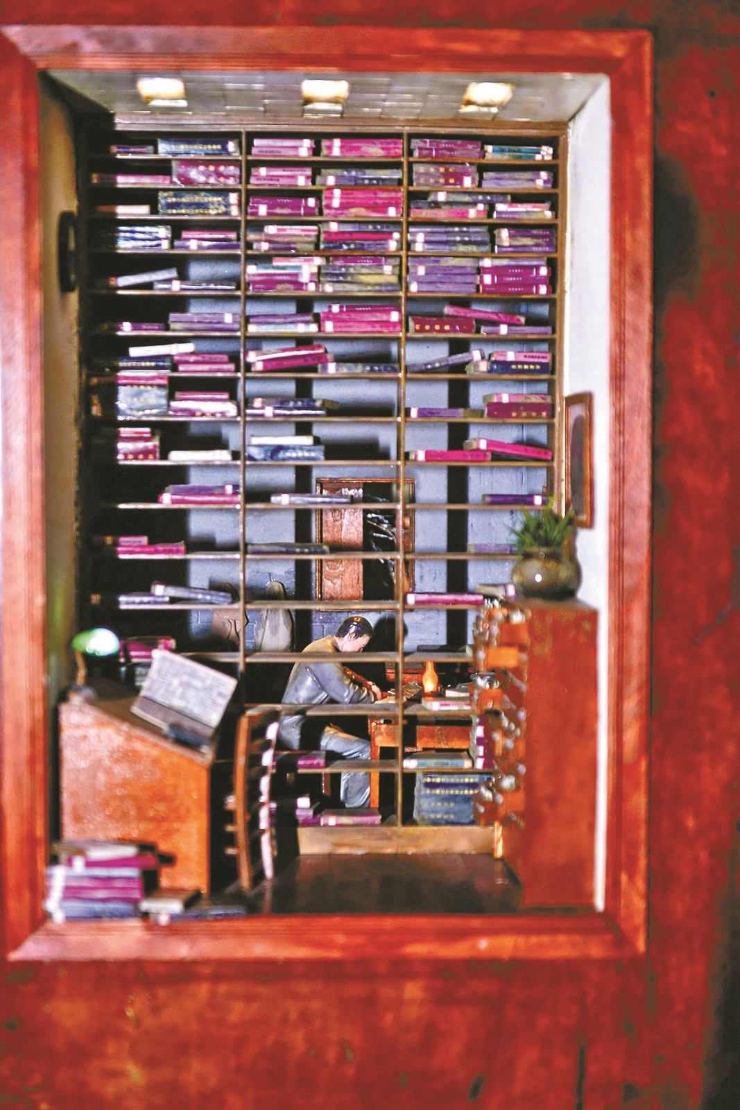 这是12月21日开幕的 “从‘小家’到‘大国’——党章守护者微缩场景模型展”的寻常一幕,却蕴含着不寻常的匠心。中国美术学院师生以12件手提箱装置与24幅AI重构图像,将一段厚重历史凝练于53平方米的空间里。