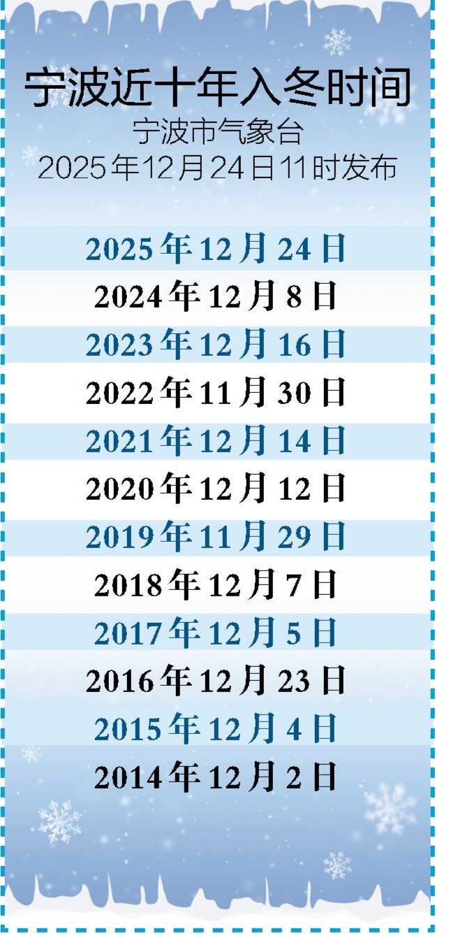 这场年末的“入冬仪式”,在气象记录册上刻下了不同寻常的一笔:宁波的入冬日期打破了2004年和2016年保持的12月23日纪录,是当地有气象记录以来的最晚入冬时间。同样,绍兴、衢州也分别打破了各自的最晚入冬纪录。