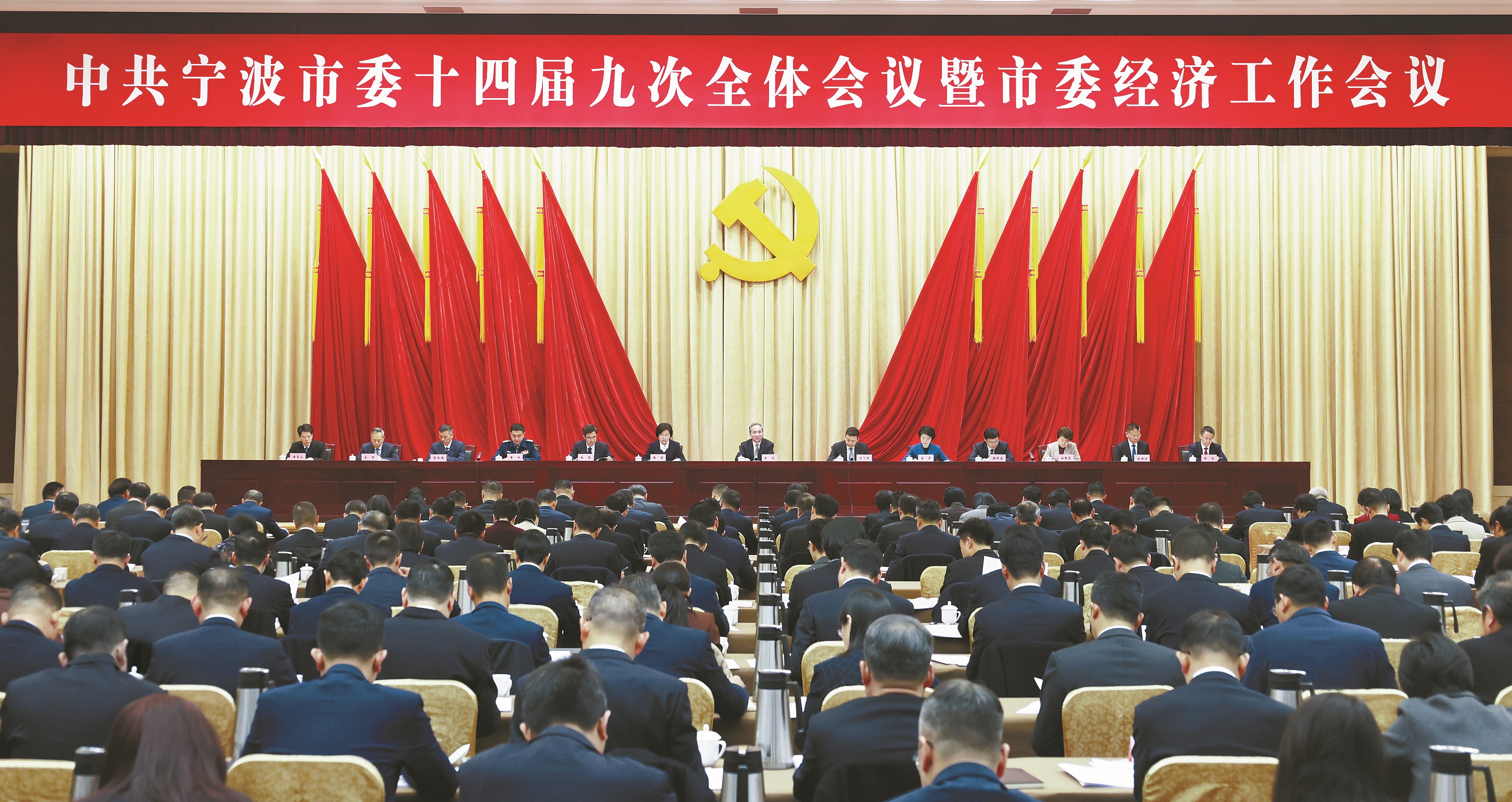 会议深入学习贯彻党的二十大、二十届历次全会精神和中央经济工作会议精神,学深悟透习近平总书记对浙江、对宁波工作重要指示精神,全面落实省委十五届八次全会和省委经济工作会议决策部署,听取和讨论了王成受市委常委会委托作的工作报告,审议通过了《中共宁波市委关于制定宁波市国民经济和社会发展第十五个五年规划的建议》,研究部署2026年工作,动员全市上下深入践行“八八战略”,弘扬“六干”作风,聚力实干争先,奋力谱写中国式现代化宁波新篇章。会议结束时,王成就贯彻落实会议精神、做好岁末年初各项工作作了讲话。