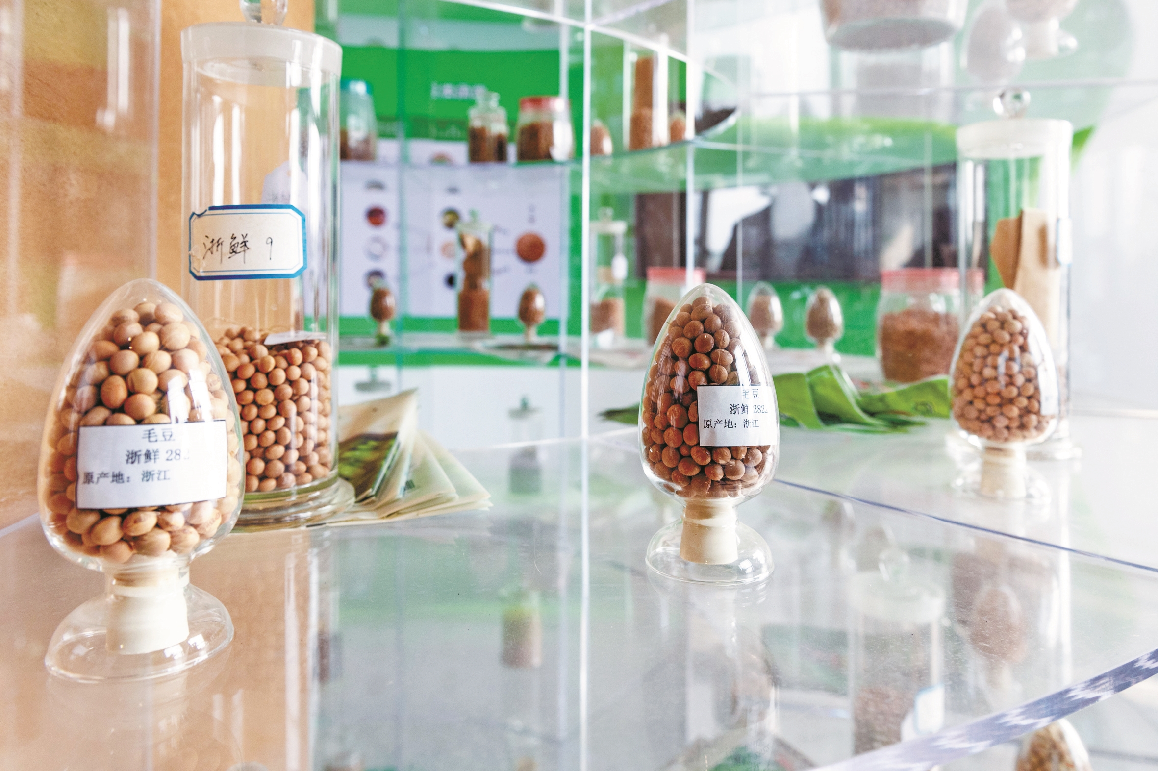 “浙鲜”系列鲜食大豆的亩产量提高了12.8%;成品率高了,其中一荚三粒豆仁的比例提高5个到10个百分点;口感更有糯性,并带有甜味……