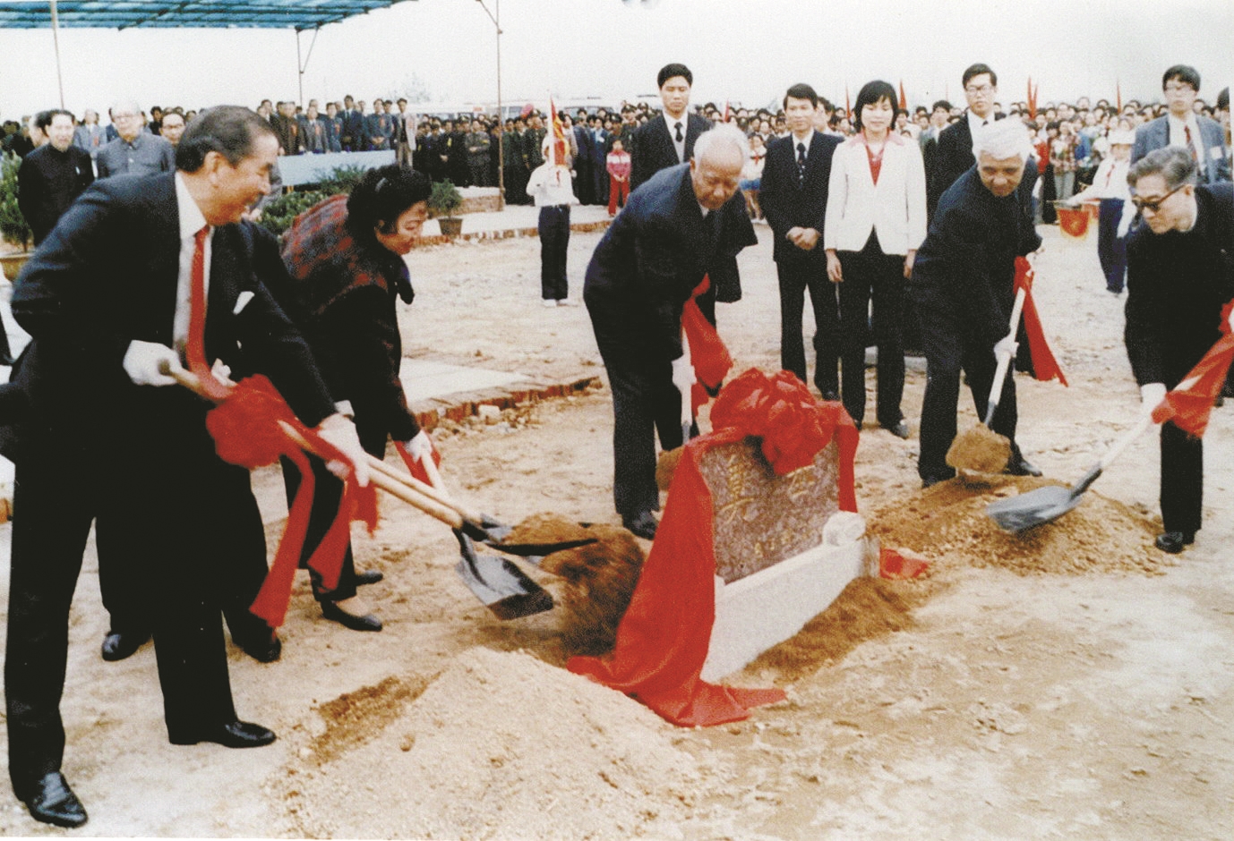 1984年包玉刚回乡时,乡亲们聚集在由包氏家族捐建的、新落成的钟包村村口石牌坊下。欢迎的人群里,有一名18岁的钟包村青年,他踮着脚尖,目光追随着老乡长的身影,激动地拍红了手掌。